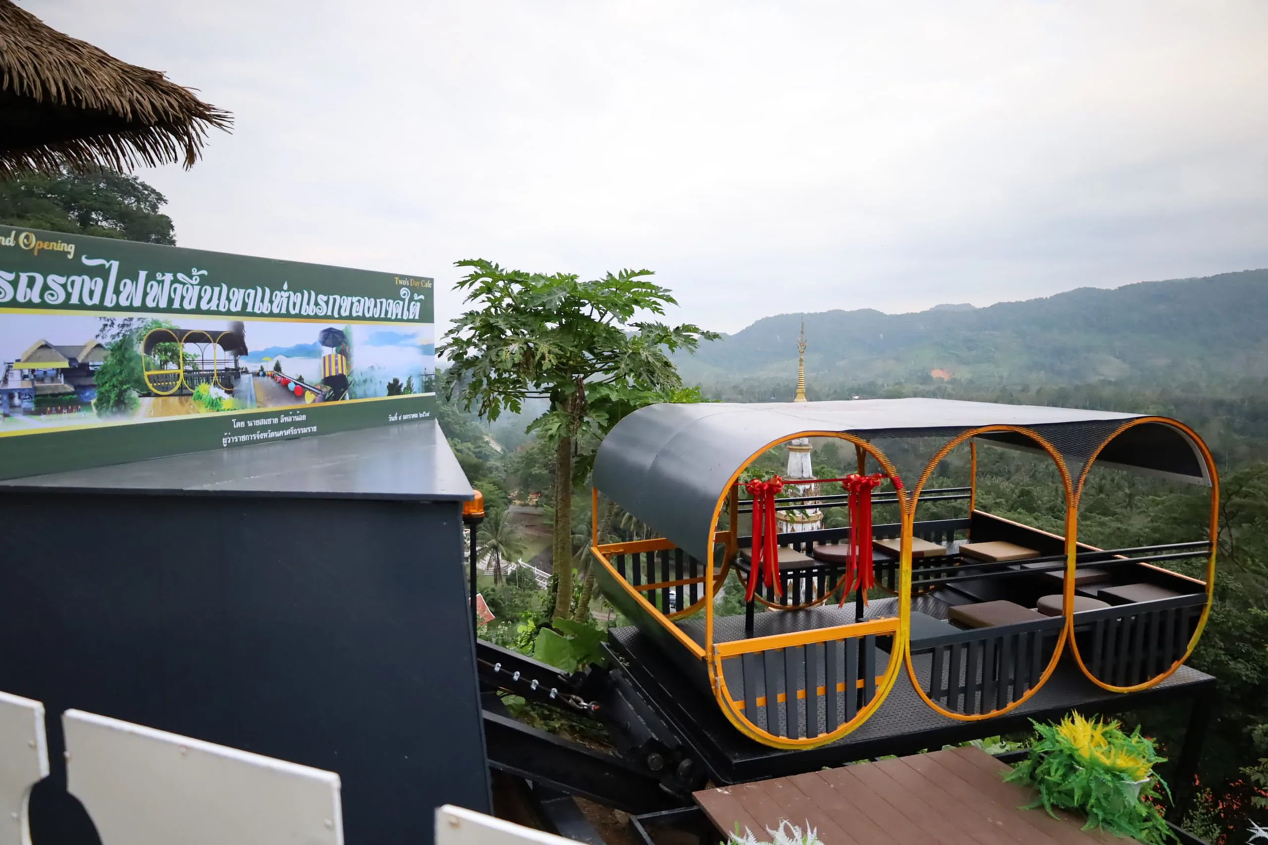 โครงการรถรางไฟฟ้าขึ้นเขา ณ Two’s Day Cafe ถือฤกษ์วันพิเศษ เป็นก้าวแรกของปีพุทธศักราช 2569 เพื่อส่งเสริมการท่องเที่ยวเชิงธรรมชาติ ควบคู่การสร้างเศรษฐกิจและรายได้ให้กับประชาชนในพื้นที่ โดยรถรางไฟฟ้าดังกล่าวนับเป็นแห่งแรกของภาคใต้ ที่ออกแบบเพื่ออำนวยความสะดวกแก่นักท่องเที่ยว ด้วยมาตรฐานความปลอดภัยสูง เป็นมิตรต่อสิ่งแวดล้อม และช่วยเพิ่มประสบการณ์การท่องเที่ยวในมิติใหม่ Two’s Day Cafe เป็นคาเฟ่บนพื้นที่สูง ที่สามารถชมทะเลหมอกและทัศนียภาพของหุบเขาแบบพาโนรามา 360 องศา โอบล้อมด้วยธรรมชาติอันอุดมสมบูรณ์ของอำเภอลานสกา ซึ่งได้รับการขนานนามว่าเป็นอำเภอที่มีอากาศดีที่สุดแห่งหนึ่งของประเทศไทย นักท่องเที่ยวสามารถนั่งพักผ่อน ชมวิว ฟังเพลงเพราะ ๆ ในบรรยากาศสบาย ๆ สร้างความประทับใจทั้งในช่วงเช้าที่มีทะเลหมอก และช่วงหลังฝนตกที่หมอกลอยละล่องทั่วหุบเขา