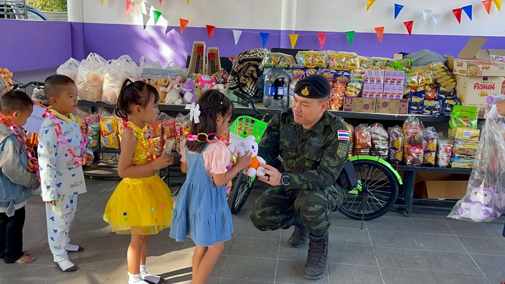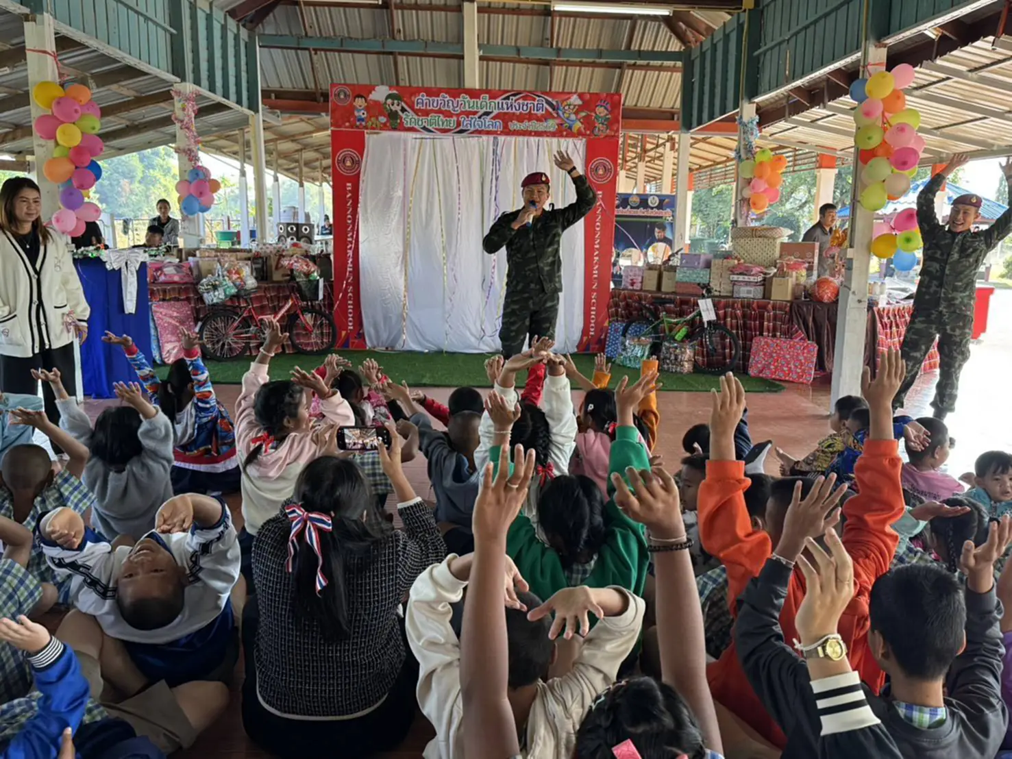 ทั้งนี้ ทางเจ้าหน้าที่ทหารในพื้นที่ได้ส่งมอบของขวัญวันเด็ก ให้กับน้องนักเรียน และได้น้อมนำพระราชดำรัสของพระบาทสมเด็จพระเจ้าอยู่หัวฯ ในโอกาสวันเด็กแห่งชาติ ประจำปีพุทธศักราช 2569 ความว่า “เด็ก ๆ ทุกคนควรทำความเข้าใจให้ถูกต้องว่า วินัยไม่ใช่เพียงการปฏิบัติตามกฎข้อบังคับ แต่คือความสามารถในการควบคุมตนเอง ให้ทำในสิ่งที่สมควรทำ อันจะนำมาซึ่งความสุขและความเจริญอย่างแท้จริง การฝึกฝนตนเองให้มีวินัย จึงมีคุณประโยชน์อย่างยิ่ง ควรที่ทุกคนจะได้ฝึกหัดปฏิบัติจนเป็นนิสัย” ณ พระที่นั่งอัมพรสถาน พระราชวังดุสิต วันที่ 26 ธันวาคม พุทธศักราช 2568