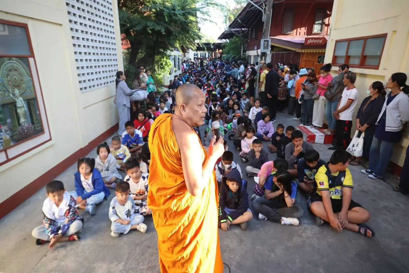 วันที่ 10 มกราคม 2569 บรรยากาศวันเด็กแห่งชาติที่วัดบางพลีใหญ่กลาง อำเภอบางพลี จังหวัดสมุทรปราการ เป็นไปอย่างคึกคักตั้งแต่ช่วงเช้า มีผู้ปกครองจูงบุตรหลานจำนวนกว่าพันคน เดินทางมาร่วมกิจกรรมและรอรับของขวัญวันเด็กอย่างเนืองแน่น