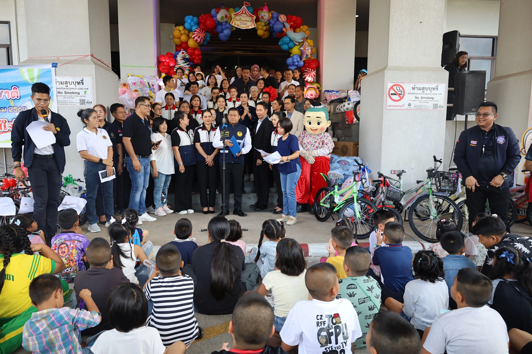 ต่อมาในเวลา 09.00 น.นายสมชาย ลีหล้าน้อย ผู้ว่าราชการจังหวัดนครศรีธรรมราช พร้อมด้วยนางสาววันษา ลีหล้าน้อย นายกเหล่ากาชาดจังหวัด/ประธานแม่บ้านมหาดไทยจังหวัดนครศรีธรรมราช ได้เป็นประธานในพิธี อ่านสารวันเด็กแห่งชาติจากนายกรัฐมนตรี พร้อมให้โอวาทแก่เด็กและเยาวชน ก่อนจะร่วมจับรางวัลและมอบรถจักรยานให้กับเด็ก ๆ ด้วยตนเอง สร้างความประทับใจให้กับทั้งเด็กและผู้ปกครองที่มาร่วมงานเป็นอย่างมาก อย่างยิ่งการจัดกิจกรรมเชิญชวนน้อง ๆ เด็กและเยาวชน ตลอดจนผู้ปกครองได้เข้าเยี่ยมชมห้องปฏิบัติงานผู้ว่าราชการจังหวัดนครศรีธรรมราช พร้อมทั้งให้เด็กๆ ได้นั่งเก้าอี้ของผู้ว่าราชการจังหวัดเพื่อร่วมบันทึกภาพและรับของรางวัล ภายในห้องปฏิบัติงาน ที่บริเวณชั้น 2 ศาลากลางจังหวัดนครศรีธรรมราชด้วย