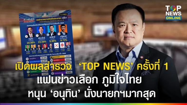 เปิดผลสำรวจ “TOP NEWS” ครั้งที่ 1 แฟนข่าวเลือก ภูมิใจไทย หนุน “อนุทิน” นั่งนายกฯมากสุด