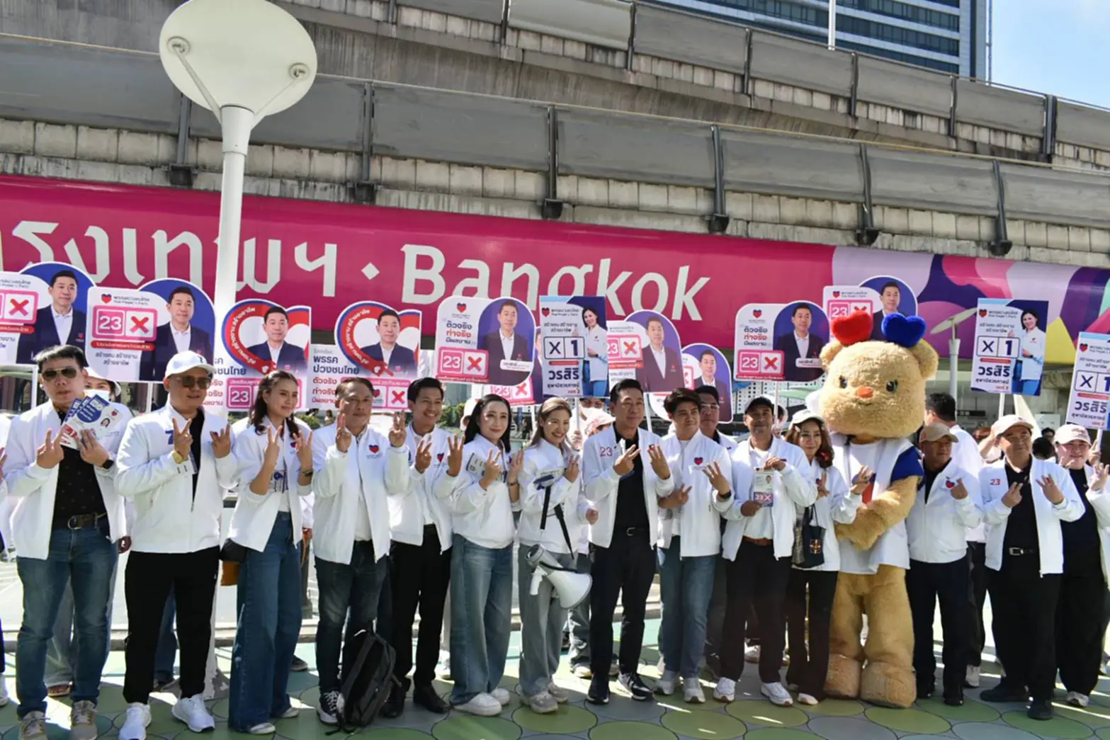 นายเอกสิทธิ คุณานันทกุล หัวหน้าพรรคปวงชนไทย นำทีมผู้สมัครสส.กทม. และน้องหมีเนย “ปวงชนไทย” ช่วยนางสาว