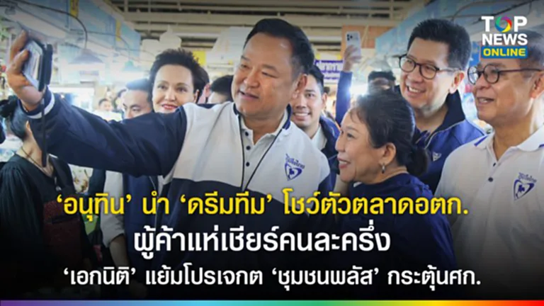 "อนุทิน" นำ "ดรีมทีม" โชว์ตัวตลาดอตก. ผู้ค้าแห่เชียร์คนละครึ่ง "เอกนิติ" แย้มโปรเจกต์ใหม่ "ชุมชนพลัส" กระจายรายได้กระตุ้นศก.