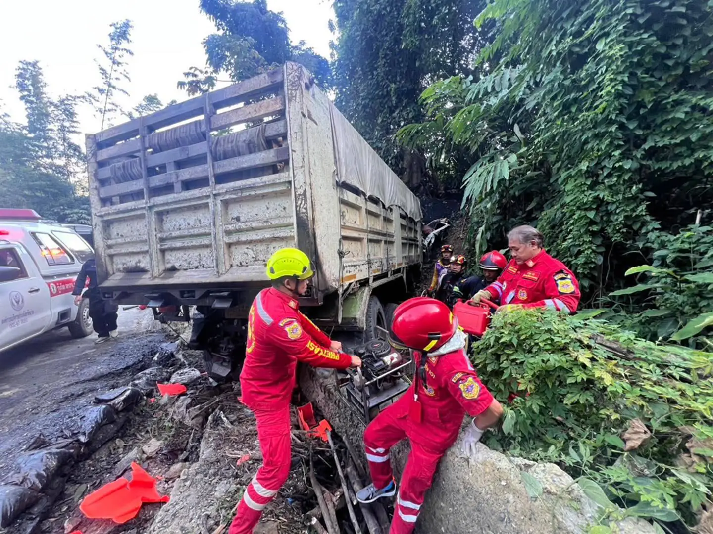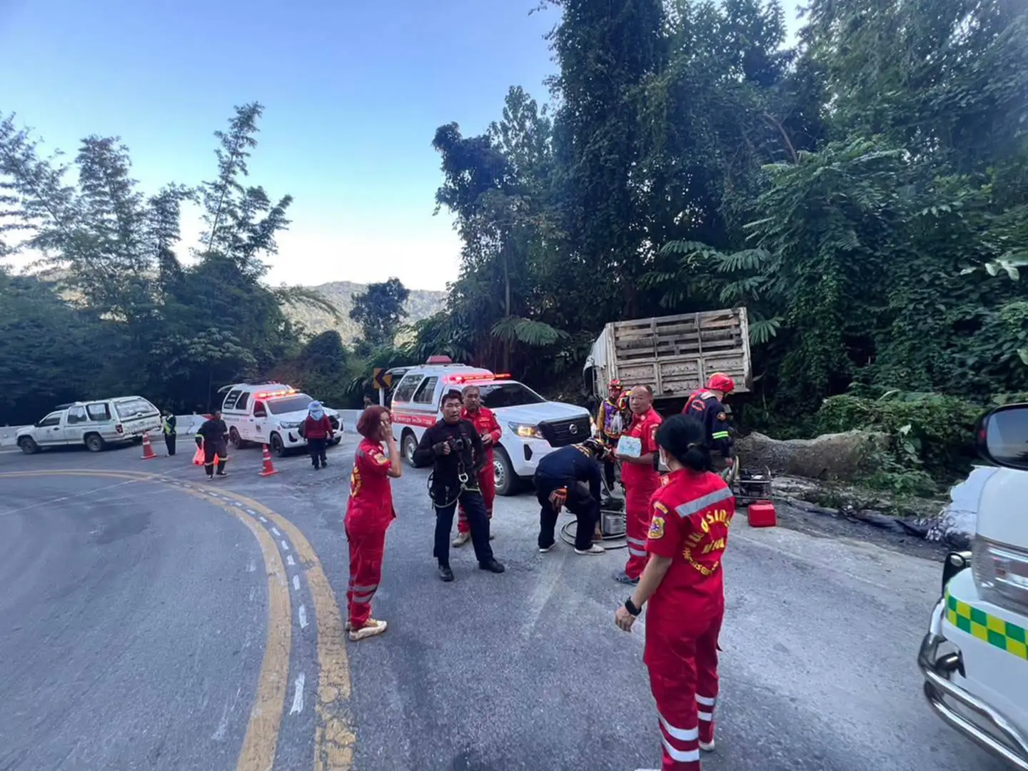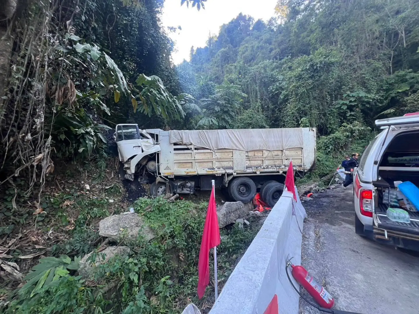 เมื่อวันที่ 9 มกราคม 2569 เวลา 14.24 น. ร.ต.อ.กฤษณุชา ไทยทาน พนักงานสอบสวน สภ.สองแคว จังหวัดน่าน รับแจ้งเหตุจากศูนย์วิทยุนครน่าน 191 ว่ามีอุบัติเหตุรถบรรทุกเสียหลักลงข้างทาง และมีผู้ติดภายใน บริเวณถนนสายท่าวังผา – เชียงคำ (ทางหลวงสาย 1148) ช่วงโค้งดอยจี่ เขตบ้านน้ำเกาะ ตำบลยอด อำเภอสองแคว จังหวัดน่าน จึงรุดไปตรวจสอบ
