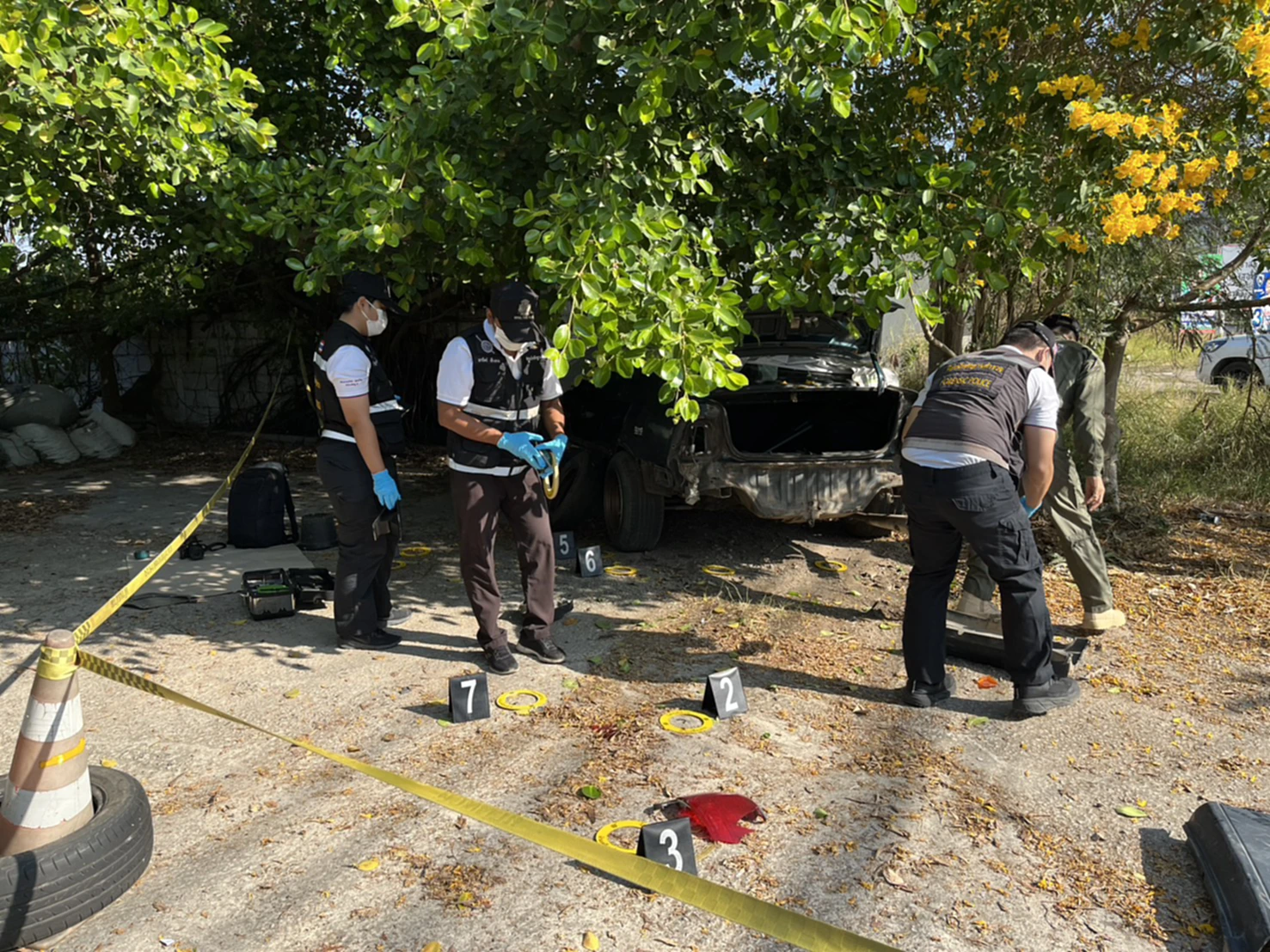 เมื่อวันที่ 11 ม.ค. 2569 พ.ต.ท.วิชาญ กลิ่นสุข สารวัตรสอบสวน สภ.อ่าวน้อย อ.เมือง จ.ประจวบคีรีขันธ์ ได้รับแจ้งเหตุคนร้ายใช้ระเบิดไปป์บอมปาใส่บ้านเลข 132/8 หมู่ 16 ต.อ่าวน้อย อ.เมืองประจวบคีรีขันธ์ ใกล้ทางเข้าสี่แยกเข้านิคม กม.5 จึงรายงานให้ผู้บังคับบัญชาทราบ จากนั้นไปตรวจที่เกิดเหตุพร้อมด้วย พ.ต.อ.ชาญยุทธ พวงสั้น ผกก.พร้อมกำลังชุดสืบสวน ที่เกิดเหตุเป็นร้านซ่อมรถยนต์และร้านกาแฟอยู่ริมถนนเพชรเกษม บริเวณหน้าบ้านพบรถยนต์ฮอนด้าซิตี้สีเขียว ทะเบียน กค. 2040 ประจวบคีรีขันธ์ สภาพด้านหลังได้รับความเสียหายยับเยินจากแรงระเบิด เจ้าหน้าที่จึงนำเชือกโปลิสไลน์กั้นที่เกิดเหตุ เพื่อไม่ให้ผู้เกี่ยวข้องเข้าไปยุ่งเกี่ยวกับหลักฐาน