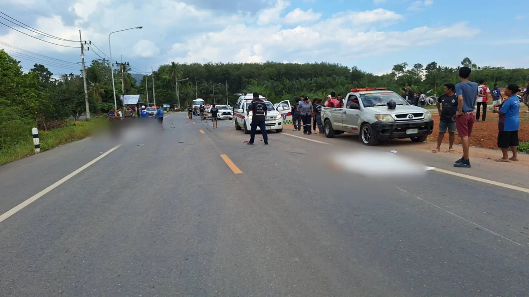 เมื่อถึงที่เกิดเหตุพบผู้เสียชีวิต 2 ราย เป็นสามีภรรยานอนเสียชีวิตอยู่ข้างรถจักรยานยนต์ ทะเบียนจังหวัดนครศรีธรรมราช ทราบชื่อผู้เสียชีวิตคือ นายสิทธิศักดิ์ อายุ 26 ปี อยู่บ้านหมู่ 4 ต.ถ้ำพรรณรา เป็นผู้ขับขี่รถจักรยานยนต์ และนางจุฑามาศ อายุ 23 ปี ภรรยา อยู่บ้านหมู่ 7 ต.ถ้ำพรรณรา สภาพศพแขนขาหัก ศีรษะแตก เลือดอาบ ใกล้กันบริเวณที่ดินร้างริมถนนพบรถกระบะคู่กรณี ยี่ห้อโตโยต้า วีโก้ สีดำ ทะเบียนกรุงเทพมหานคร สภาพรถพังเสียหายอย่างหนัก และพบผู้บาดเจ็บเป็นคนขับรถกระบะอาการสาหัส เจ้าหน้าที่จึงรีบนำตัวส่งโรงพยาบาล แต่ผู้บาดเจ็บทนพิษบาดแผลไม่ไหวและเสียชีวิตในเวลาต่อมา ทราบชื่อคือ นายณัฐ อายุ 50 ปี รวมผู้เสียชีวิตทั้งหมด 3 ราย