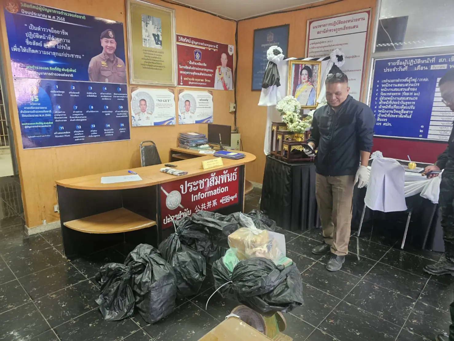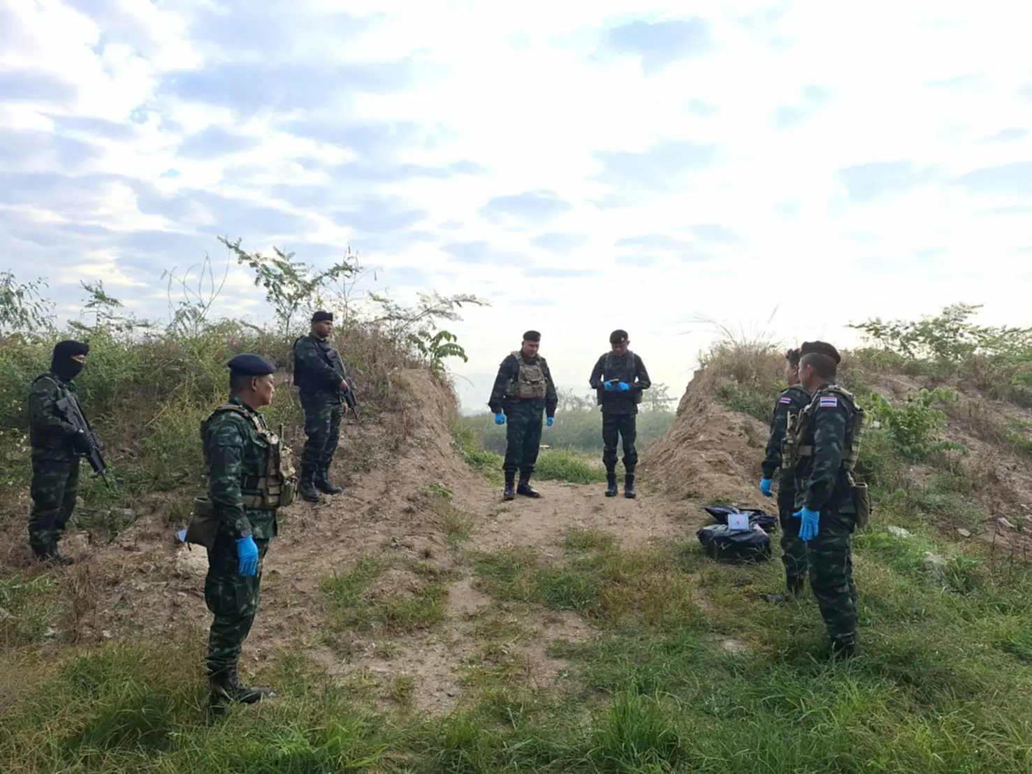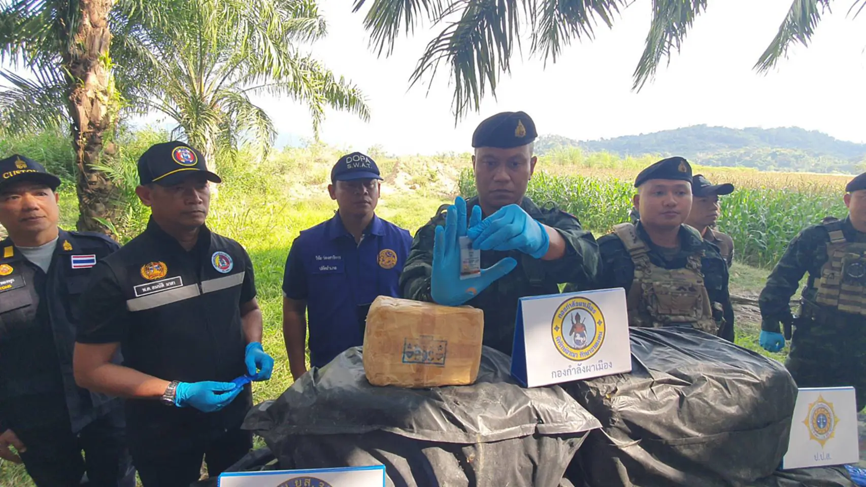 จากการเข้าตรวจสอบพื้นที่ (พิสูจน์ทราบ) ในช่วงเช้าวันที่ 11 มกราคม เจ้าหน้าที่พบกระสอบฟางสีรุ้งหุ้มด้วยพลาสติกสีดำจำนวน 5 กระสอบ ตกอยู่ในที่เกิดเหตุ ภายในบรรจุยาบ้า (เมทแอมเฟตามีน) ชนิดเม็ดสีส้ม ประทับตรา “WY” กระสอบละประมาณ 100,000 เม็ด รวมของกลางทั้งหมด 500,000 เม็ด น้ำหนักรวมประมาณ 56 กิโลกรัม