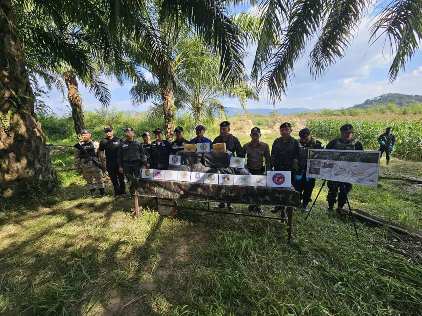 เมื่อเวลา 14.00 น. วันที่ 11 มกราคม 2569 พลตรี สาธิต ไวยนนท์ ผู้บัญชาการกองกำลังผาเมือง ได้มอบหมายให้ พันเอก ธวัฒน์ อินกอง รองผู้บังคับหน่วยเฉพาะกิจทัพเจ้าตาก กองกำลังผาเมือง พร้อมด้วยเจ้าหน้าที่ตำรวจ สภ.เชียงแสน ฝ่ายปกครอง และหน่วยงานที่เกี่ยวข้อง ลงพื้นที่ตรวจสอบจุดเกิดเหตุและร่วมแถลงผลการตรวจยึดยาเสพติด บริเวณบ้านวังลาว หมู่ 4 ต.เวียง อ.เชียงแสน จ.เชียงราย