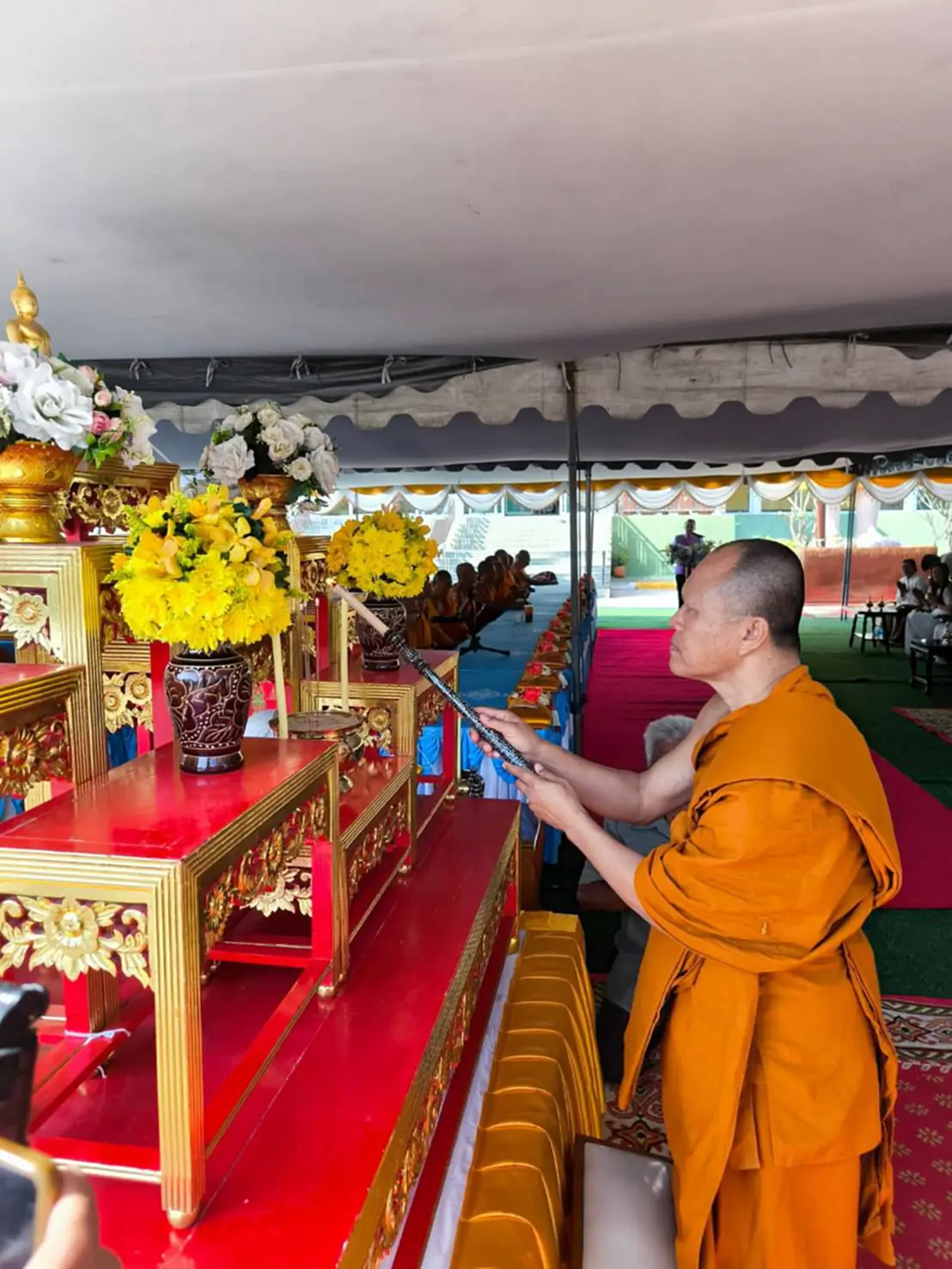 จากนั้นได้นิมนต์พระสงฆ์ที่ร่วมเจริญพระพุทธมนต์ฉันภัตตาหารเพล ก่อนเสร็จสิ้นพิธีด้วยความเรียบร้อยและเป็นสิริมงคลแก่ผู้ร่วมงานทุกคน
