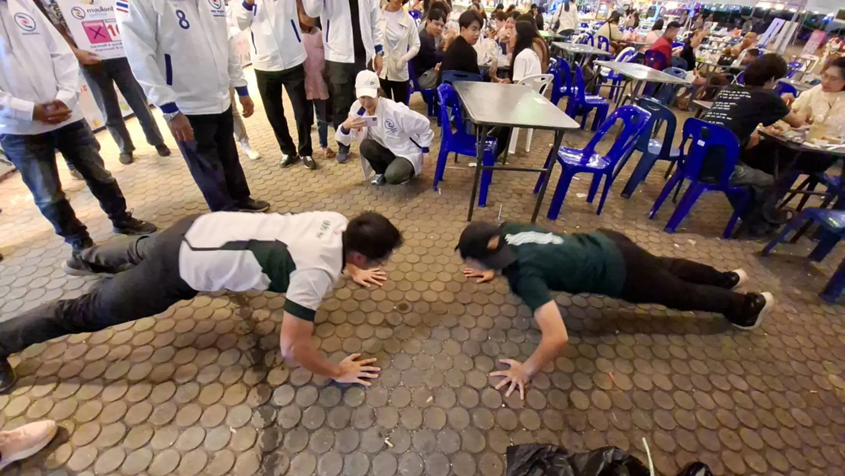 ในระหว่างการเดินพบปะประชาชนภายในงานกาชาด นายปฏิพัทธ์ สินเดช หรือน้องเกรด อายุ 19 ปี ที่มาเดินเที่ยวในงานฯเมื่อได้พบกับคุณ”เต้007″ก็ได้ปรี่เข้าไปหา พร้อมกับขอดันพื้น 20 ครั้ง และขอถ่ายรูปเป็นที่ระลึก