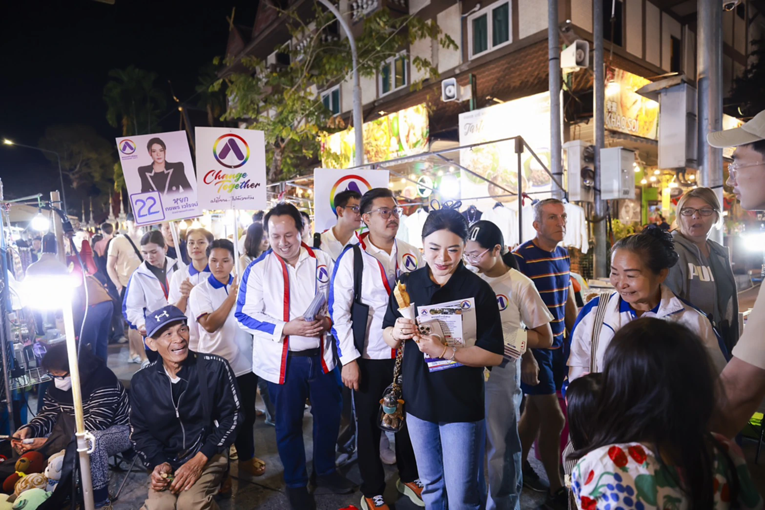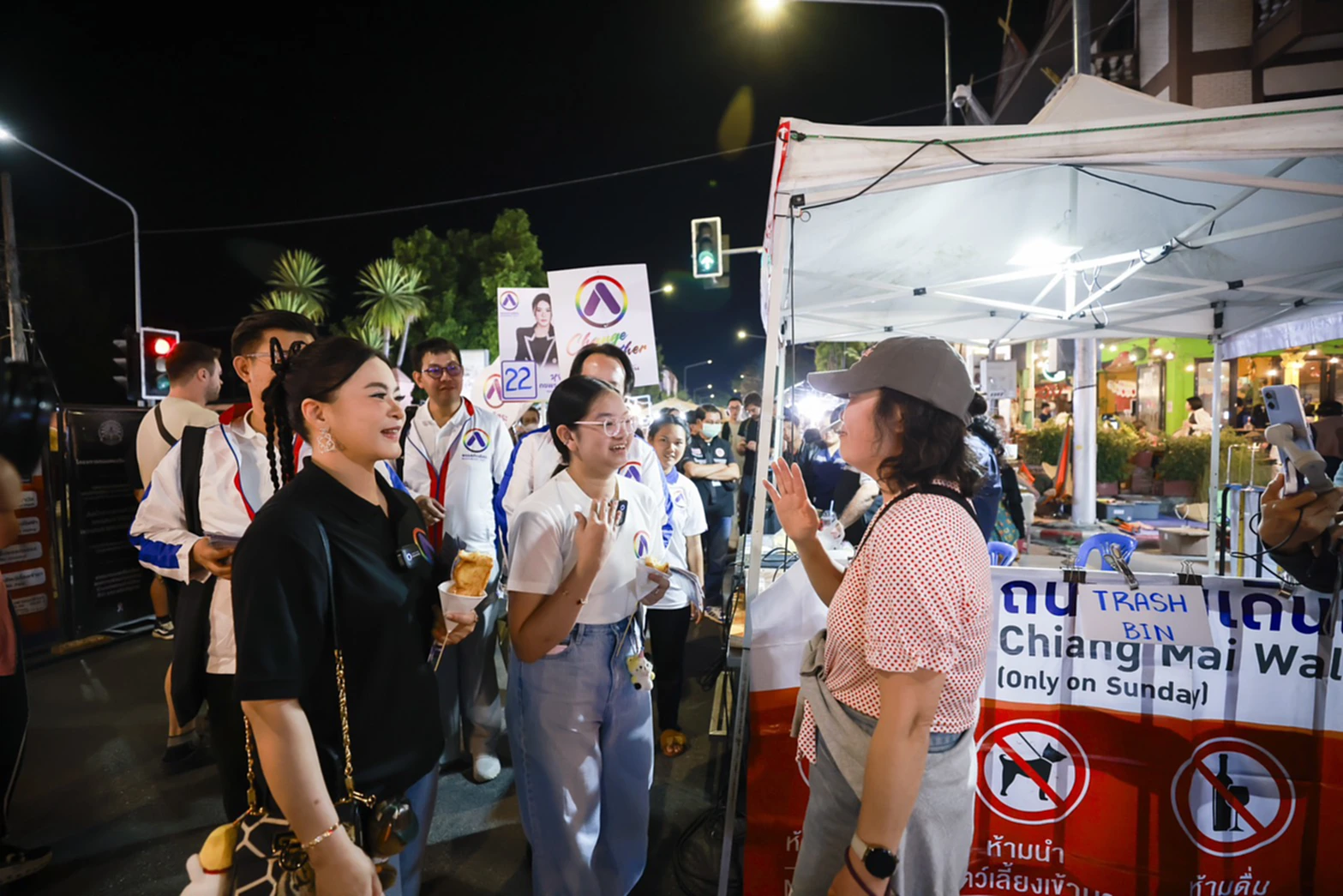 เชียงใหม่ “มาดามหยก“ นำทีมผู้สมัครพรรคก้าวอิสระ ลงพื้นที่ถนนคนเดินเชียงใหม่หาเสียง