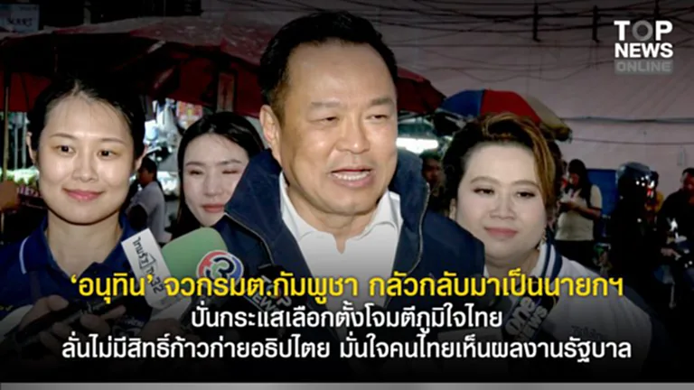 “อนุทิน” จวกรมต.กัมพูชา กลัวกลับมาเป็นนายกฯ ปั่นกระแสเลือกตั้งโจมตี “ภูมิใจไทย” ลั่นไม่มีสิทธิ์ก้าวก่ายอธิปไตย มั่นใจคนไทยเห็นผลงานรัฐบาล – Top News รายงาน