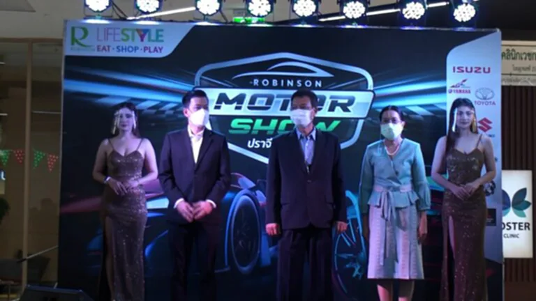 เมื่อเวลา 14.00 น. วันนี้ (26 พ.ย .2564) นายวรพันธุ์ สุวัณณุสส์ ผู้ว่าราชการจังหวัดปราจีนบุรี และนางมันฑนา สุวัณณุสส์ นายกเหล่ากาชาดจังหวัดปราจีนบุรี เป็นประธานเปิดงาน “Robinson Motor Show 2021 โรงบินสันไลฟ์สไตล์ ปราจีนบุรี” บริเวณห้างโรบินสันปราจีนบุรี ชั้น 1 ใกล้จุดประชาสัมพันธ์ ทั้งนี้มีค่ายรถยนต์ชั้นนำเข้าร่วม อาทิ โตโยต้า, ฮอนด้า, มาสด้า, มิซูบิชิ, ยามาฮ่า, นิสสัน, ฟอร์ด, อิซูซุ, ซูซูกิ และโปรเกสฟอร์ ประดับยนต์ พร้อมกับมีราคาโปรโมชั่นสุดพิเศษเฉพาะในงานเท่านั้น ทั้งยังมีกิจกรรมมากมายตลอดภายในงาน จุดประสงค์ของการจัดกิจกรรมในครั้งนี้เพื่อการพัฒนาอย่างไม่หยุดยั้งของเทคโนโลยีนวัตกรรมยานยนต์ สะกดสายตาทุกคู่ที่จับจ้อง ด้วยเส้นสายรูปแบบ สรีระที่ลงตัวเชิญชวนให้สัมผัส กระตุ้นอารมณ์แห่งความเร้าใจให้พุ่งทะยานสู่โลกยนตรกรรมงานมอเตอร์โชว์งานแสดงยนตรกรรมที่ปลุกอารมณ์แห่งความเร้าใจในโลกยนตรกรรม เพื่อเป็นการสร้างความคึกคักและกระตุ้นเศรษฐกิจให้กับจังหวัดปราจีนบุรี กิจกรรมมอเตอร์โชว์นี้จัดขึ้นตั้งแต่วันที่ 26 พฤศจิกายน 2564 จนถึงวันที่ 5 ธันวาคม 2564