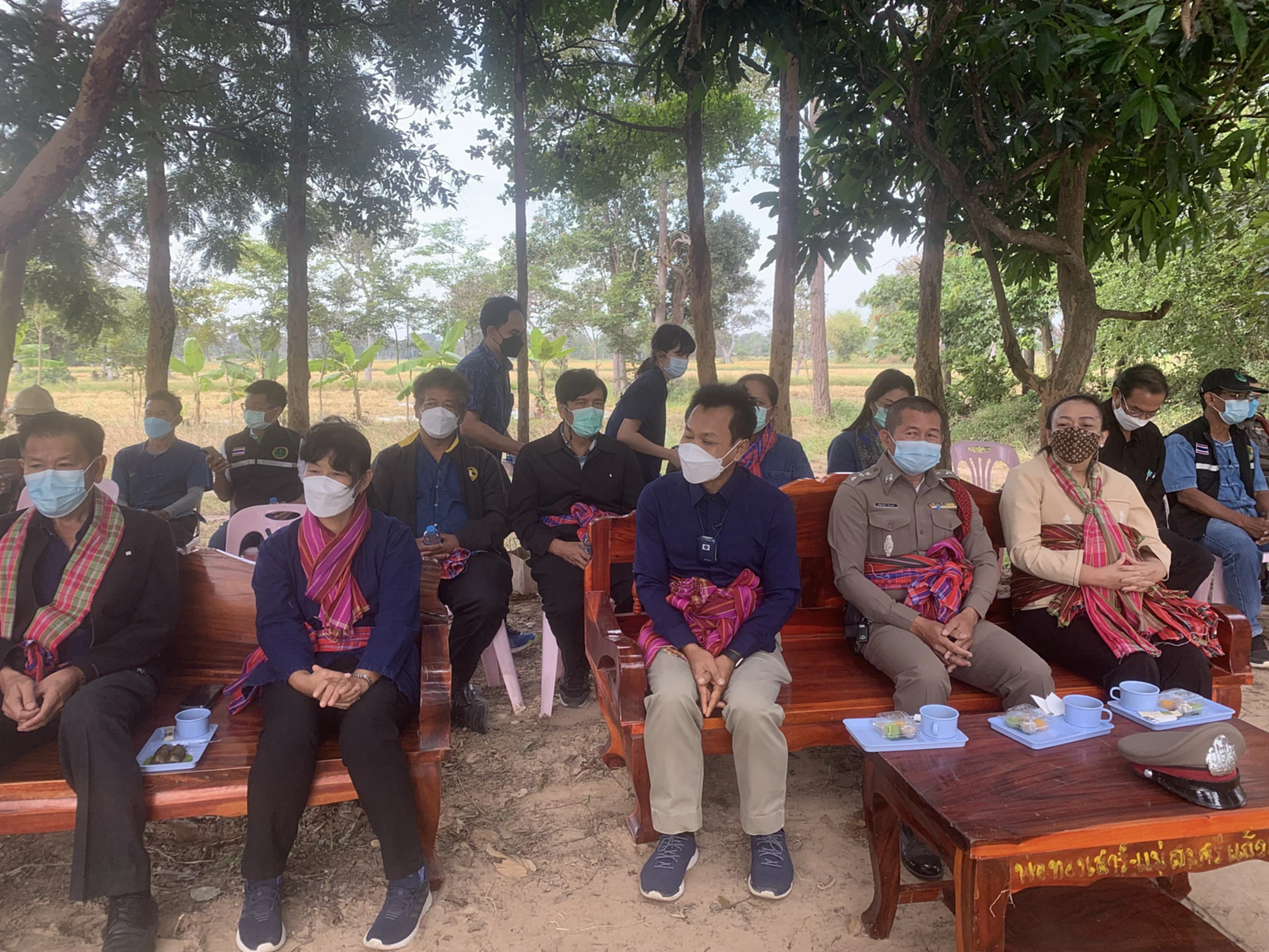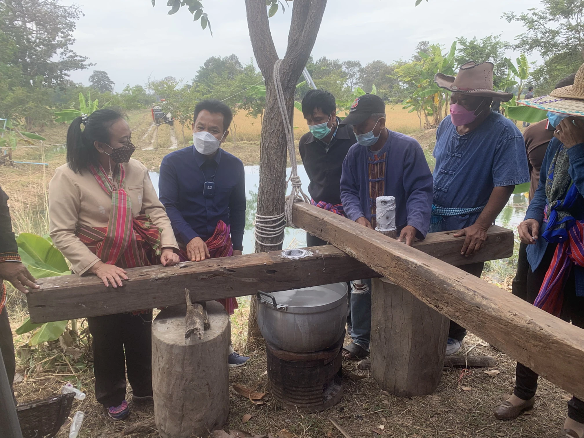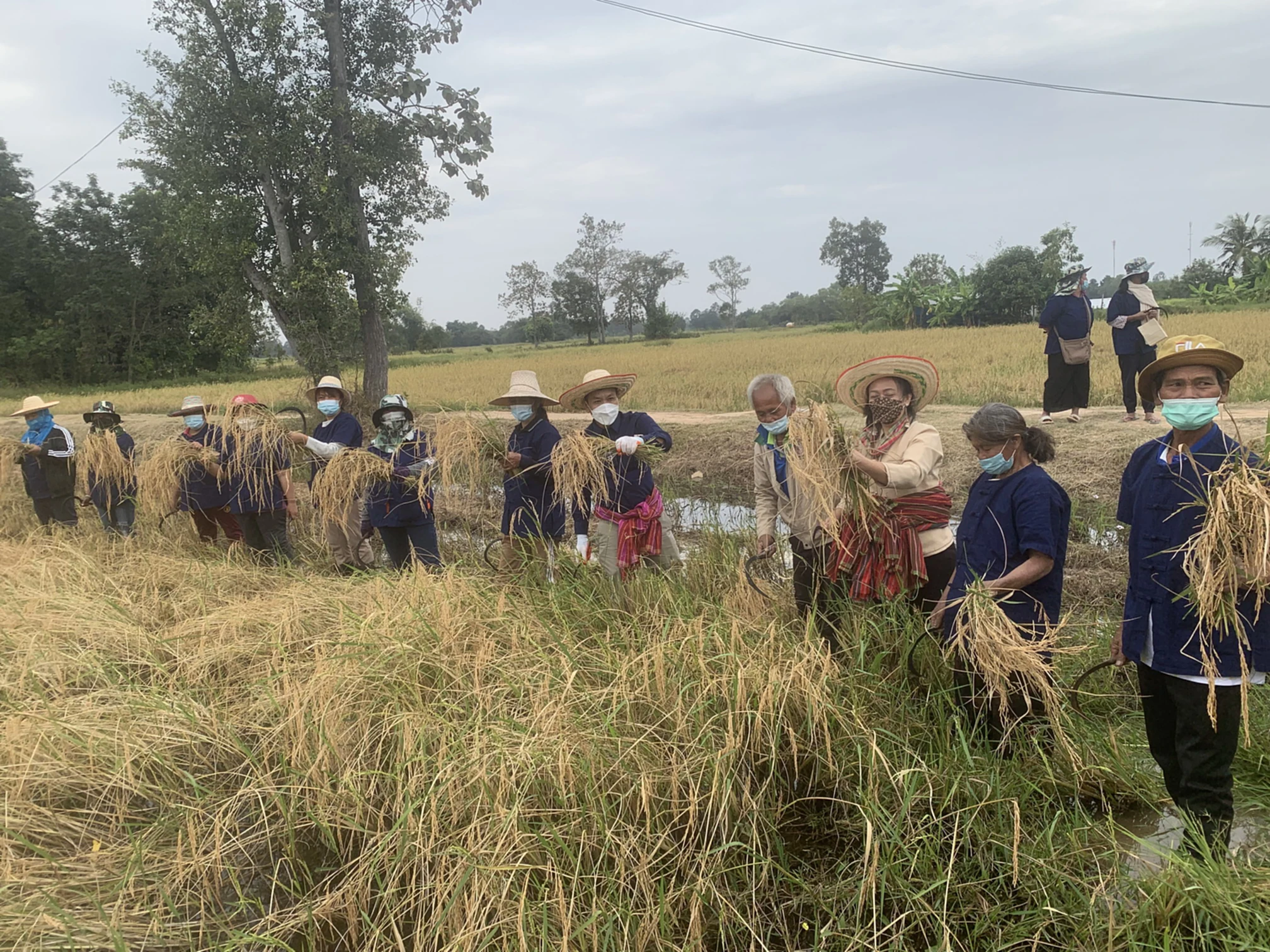 วันที่ 30 พ.ย. 2564 ผู้สื่อข่าวรายงานว่า ที่แปลงนาสาธิตข้าวอินทรีย์ บ้านโพนยาง ต.โพนยาง อ.วังหิน จ.ศรีสะเกษ นายประสงค์ ทองพันธ์ ผอ.กองตรวจสอบและรับรองมาตรฐานข้าว กรมการข้าว กระทรวงเกษตรและสหกรณ์ ได้เดินทางไปเป็นประธานลงแขกเกี่ยวข้าวและตุ้มโฮม ฮักมั่น ผูกพันด้วยใจ โดยมี นายทิวา รุ้งแก้ว ประธานคณะกรรมการประสานงานเพื่อพัฒนาจังหวัดศรีสะเกษ ผศ.ดร.ฐิตารีย์ ไตรสรณปัญญา ทีมที่ปรึกษารัฐมนตรีว่าการกระทรวงเกษตรและสหกรณ์ น.ส.ผุสดี บุญชัย ผอ.ศูนย์เมล็ดพันธุ์ข้าวศรีสะเกษ นายสมหวัง นาครินทร์ ประธานกลุ่มนาแปลงใหญ่ อ.วังหิน นำสมาชิกกลุ่มนาแปลงใหญ่ อ.วังหินจาก 13 กลุ่ม เข้าร่วมกิจกรรมลงแขกเกี่ยวข้าวและตุ้มโฮม ฮักมั่น ผูกพันด้วยใจ ในครั้งนี้เป็นจำนวนมาก ทั้งนี้เพื่อเป็นการสืบทอดวิถีชีวิตชุมชนการลงแขกเกี่ยวข้าวของชาวบ้านโพนยาง ต.โพนยาง อ.วังหิน จ.ศรีสะเกษ ต่อไป