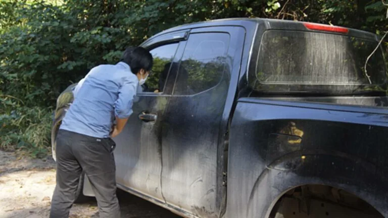 เบื้องต้นบริเวณริมถนน ภายในน้ำตกเขาอีโต้ พบรถยนต์กระบะยี่ห้อ นิสสัน นาวาร่า แค็ป สีดำ ทะเบียน 2 ฒม 5795 กรุงเทพมหานคร จอดอยู่สภาพด้านนอกมีฝุ่นเกาะทั่วรถ ส่วนภายในบริเวณด้านหน้าฝั่งคนขับพบผุู้เสียชีวิต เป็นชาย 1 ราย สวมกางเกงยีนส์ ขาสั้น เสื้อยืดสีขาวลายการ์ตูน กำลังขึ้นอืดส่งกลิ่นเหม็นคละคลุ้งไปทั่วบริเวณ และนอกจากนั้นที่บริเวณที่ด้านหลังเบาะผู้โดยสารแค็ป พบกาละมังสแตนเลส จำนวน 2 ใบวางอยู่ภายในกาละมังพบเถ้าถ่านที่มอดแล้ว คาดว่าน่าจะเป็นอุปกรณ์ที่ใช้จุดไฟ เพื่อที่จะรมควันตัวเอง ซึ่งจากการตรวจสอบของเจ้าหน้าที่ไม่พบร่องรอยการต่อสู้ และตัวของผู้เสียชีวิตไม่มีบาดแผลที่เกิดจาการถูกทำร้ายร่างการจนถึงแก่ชีวิต น่าจะเป็นการฆ่าตัวตายโดยใช้วิธีรมควันตัวเอง ทราบชื่อผู้เสียชีวิต คือนายวัชรพงษ์ พันธุระ อายุ 31 ปี บ้านเลขที่ 60/18 ต.บางเมือง อ.เมืองสมุทรปราการ จ.สมุทรปราการ ส่วนการเสียชีวิตคาดว่าไม่ต่ำกว่า4-5วัน