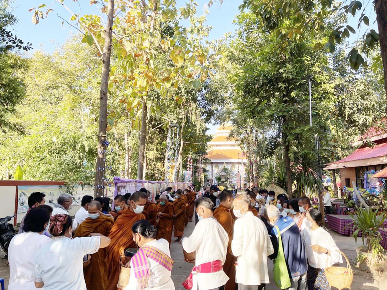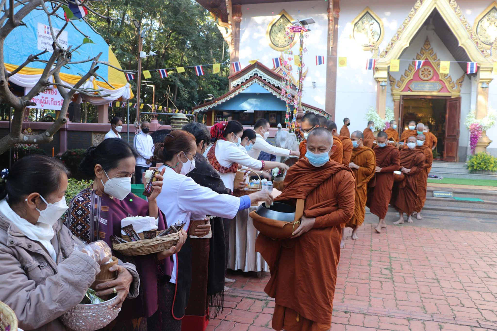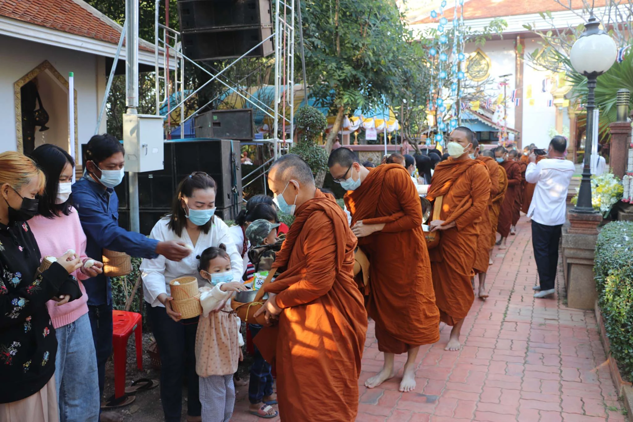 วันที่ 4 ธันวาคม 2564 ผู้สื่อข่าวรายงานว่า ที่วัดเวฬุวัน บ้านคำประถม ตำบลนิคม อำเภอสหัสขันธ์ จังหวัดกาฬสินธุ์ พระครูสิทธิวราคม ดร. เจ้าอาวาสวัดเวฬุวัน นำคณะภิกษุสงฆ์ และสามเณร ออกรับบิณฑบาตรจากพุทธศาสนิกชนชาวตำบลนิคม ประมาณ 200 คน นำโดยนายวิญญู ขันผง นายกเทศมนตรีตำบลนิคม นางอรวิภา แก้วยิ่ง ปลัดเทศบาลตำบลนิคม นายพิเชษฐ์ ปรีจิต กำนันตำบลนิคม พร้อมพุทธศาสนิกชนชาวอำเภอสหัสขันธ์ ร่วมตักบาตรบริเวณหน้าเจดีย์ศรีสัตตราช ที่ประดิษฐานหลวงพ่อเจ็ดกษัตริย์ เพื่อเป็นสิริมงคล ในการเปิดโครงการทำดีเพื่อพ่อสานต่อพระราชปณิธานในหลวง ร.๙ “งานนมัสการหลวงพ่อเจ็ดกษัตริย์” ที่ได้จัดขึ้นเพื่อกระตุ้นส่งเสริมภาคเศรษฐกิจการท่องเที่ยวช่วงฤดูหนาวของอำเภอสหัสขันธ์ โดยปีนี้ได้ประดับไฟสวยงามรอบเจดีย์ เปิดให้ประชาชนได้เที่ยวชม ถ่ายภาพและกราบไหว้ขอพรในเวลากลางคืน