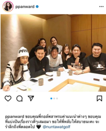 หลังจากที่มีการรายข่าวการเสียชีวิตของ “กอล์ฟ นันทวัฒน์” ด้าน คุณแม่ลูก 2 “เป้ย ปานวาด” ก็ได้โพสต์ภาพที่เคยถ่ายร่วมเฟรมกับ “กอล์ฟ นันทวัฒน์” ร่วมไว้อาลัยผ่านทางอินสตาแกรมส่วนตัวที่มีชื่อว่า ppanward พร้อมเขียนข้อความว่า “ขอบคุณพี่กอล์ฟสำหรับคำแนะนำต่างๆ ขอบคุณที่แบ่งปันเรื่องราวดีๆ เสมอมา ขอให้พี่หลับให้สบายนะคะ จะรำลึกถึงพี่ตลอดไป @nuntawatgolf” นอกจากนี้ยังมีคนในวงการบันเทิงต่างร่วมแสดงความอาลัยกันเป็นจำนวนมาก