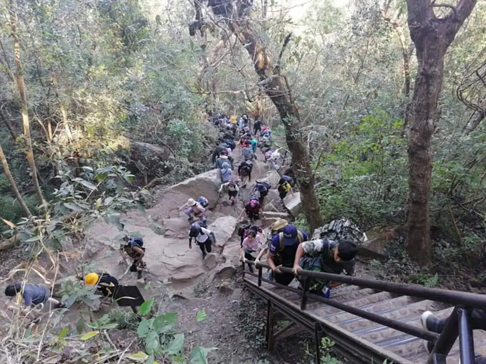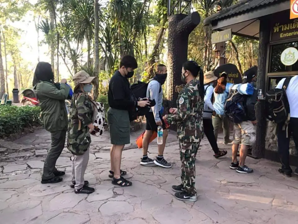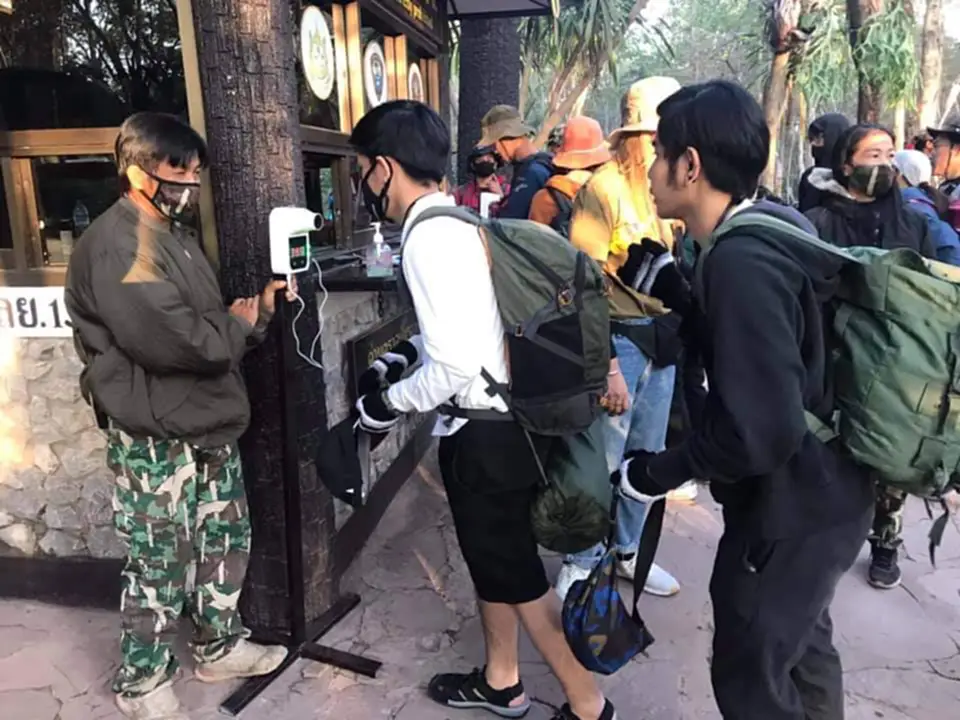 เมื่อเวลา 07.00 น.วันที่ 1 ม.ค. 2565 ผู้สื่อข่าวรายงานบรรยากาศการท่องเที่ยวอุทยานแห่งชาติภูกระดึง จ.เลย ในช่วงวันหยุดยาวเทศกาลปีใหม่ 2565 พบว่ามีความคึกคักมาก นทท.เดินทางมาเที่ยวส่วนใหญ่เป็นรถส่วนตัว คณะทัวร์และรถโดยสารประจำทาง ลานจอดรถและลานกางเต้นท์ด้านล่างใกล้กับศูนย์บริการการท่องเที่ยวศรีฐาน ต.ศรีฐาน อ.ภูกระดึงแน่นเฉลี่ย 1,400 คน/วัน การบริการลูกหาบยังไม่เพียงพอ นทท.บางส่วนต้องช่วยตนเองโดยการใช้สิ่งของที่จำเป็นใส่กระเป๋าสะพายหลังขึ้นพิชิตยอดภูแทนการ นทท.ที่มาแต่เช้าตรู่เพราะต้องการจองลูกหาบเกรงว่าจะไม่เพียงพอ