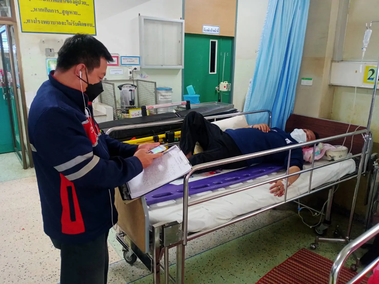 เมื่อมาถึงจุดที่มีสัญญาณโทรศัพท์ เพื่อนได้ประสานกับหน่วยกู้ภัยให้รอรับตนและแฟนที่ได้รับบาดเจ็บนำส่งโรงพยาบาลอย่างเร่งด่วน ตรวจสอบบาดแผล เข้าเครื่องเอ๊กซเรย์ ในเบื้องต้นของตนซึ่งเป็นคนขับกระดูกก้นกบร้าว ศรีษะได้รับความกระทบกระเทือน บวมที่หน้าผาก ข้อศอกของแขนด้านซ้าย ต้องส่งตัวไปเอ๊กซเรย์ต่อที่โรงพยาบาลสันทราย ส่วนอาการของยุพิน ฯ แฟนที่นั่งมาด้วย ปากฉีกเป็นแผลเย็บ 10 เข็ม ฟันหน้าโยก 2 ซี แขนด้านซ้ายยอก ก้นกบเคลื่อน ส่วนรถโตโยต้าที่ขับมาพังเสียหายเกือบทั้งคัน ต้องใช้รถยกของกู้ภัยขึ้นมาจากเหวในอีกวัน
