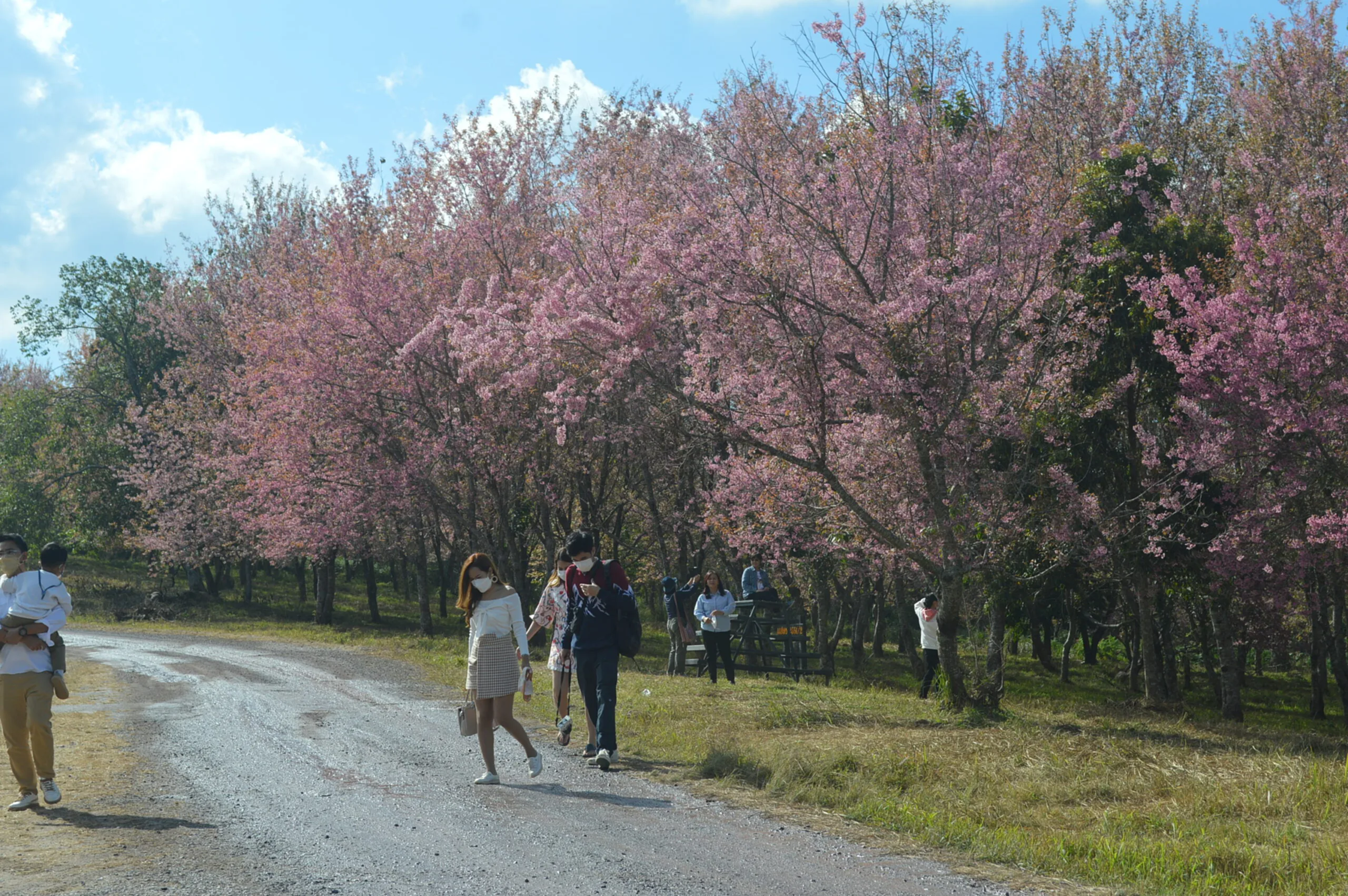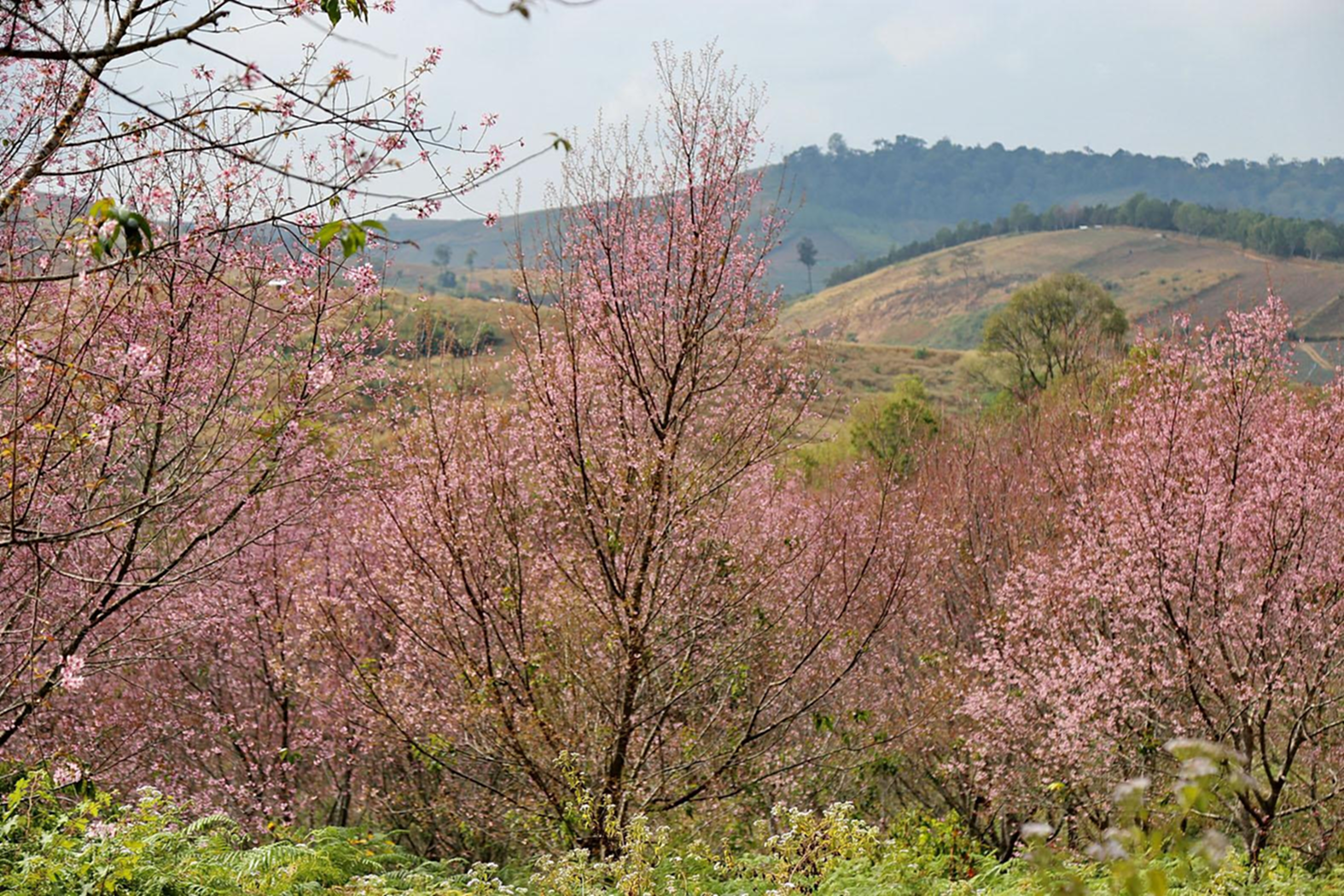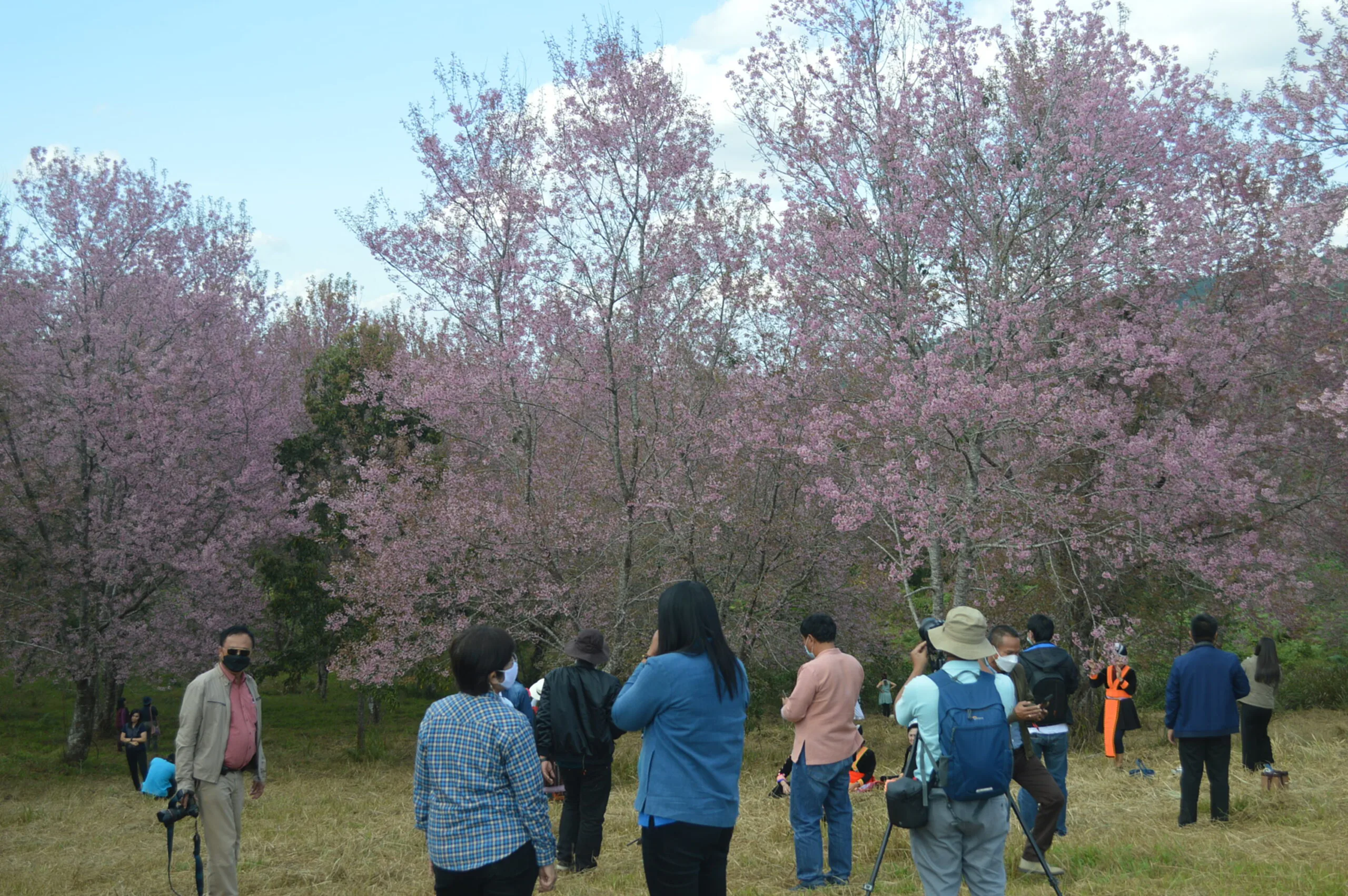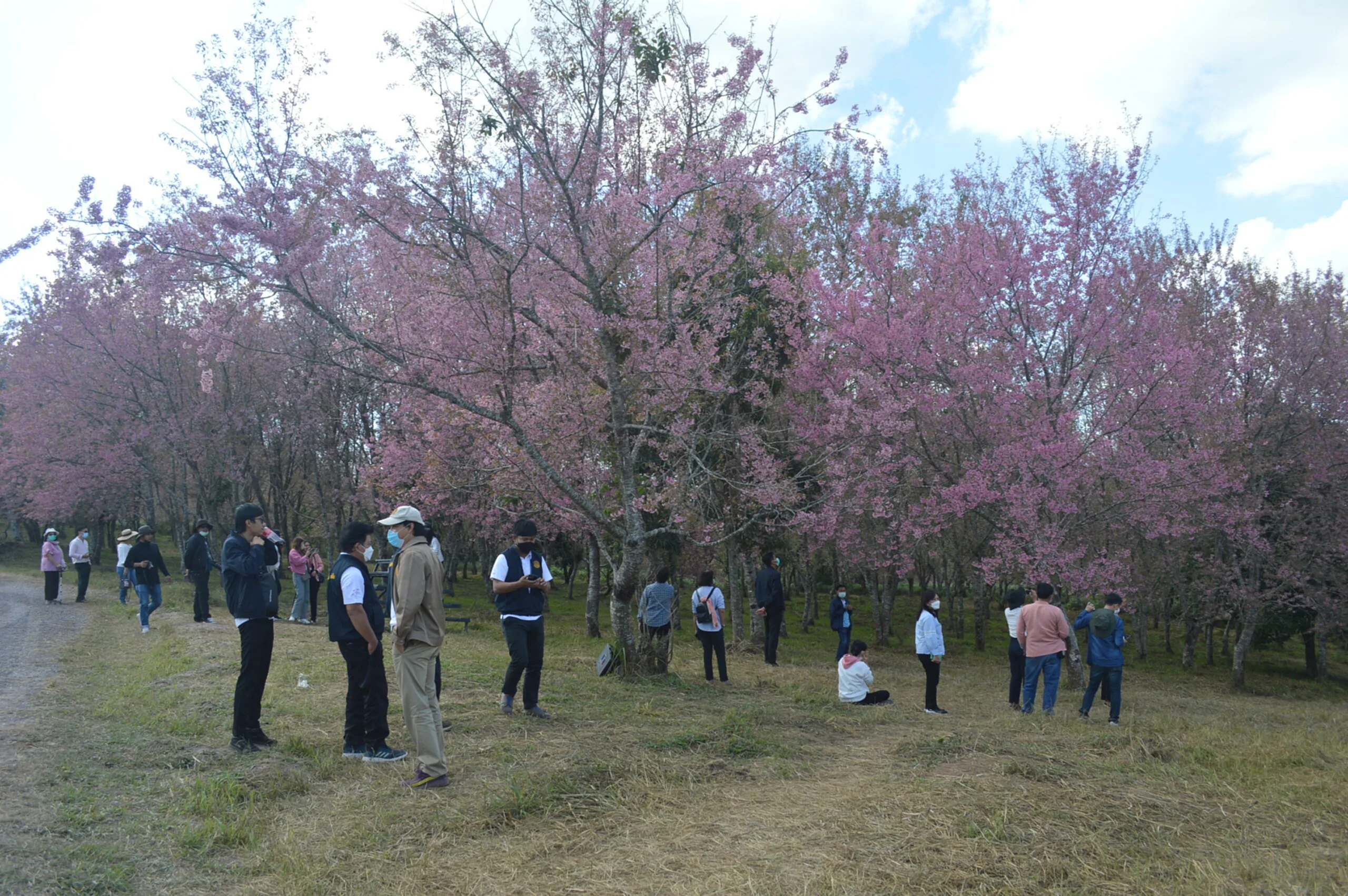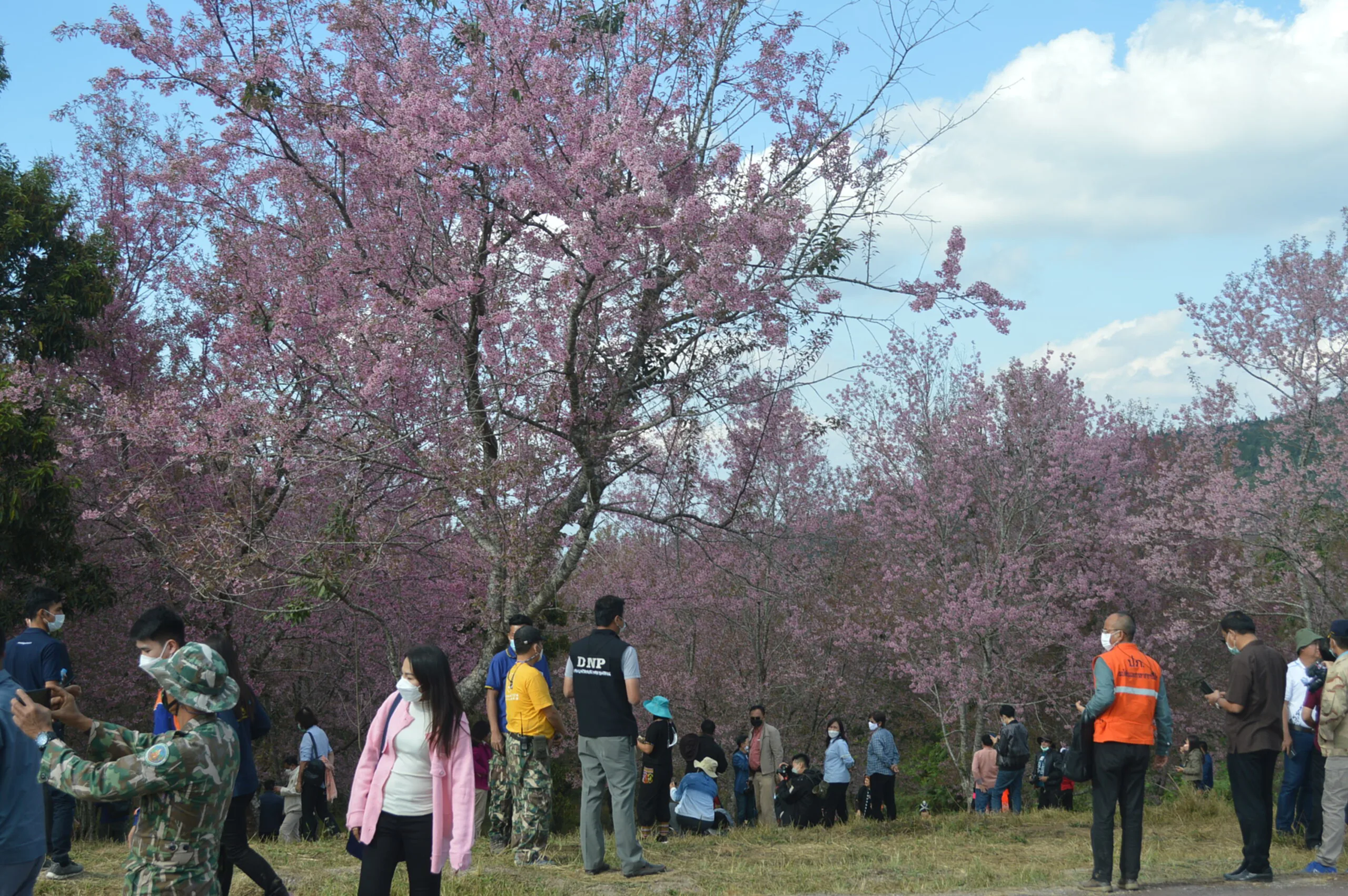 วันที่ 8 ม.ค.2565 ณ ภูลมโล อุทยานแห่งชาติภูหินร่องกล้า ต.กกสะทอน อ.ด่านซ้าย จ.เลย ผู้สื่อข่าวเดินทางพิชิตยอด”ภูลมโล” ชมดอกพญาเสือโคร่งหรือซากุระเมืองไทยบานสะพรั่งทั่วทุ่ง หุบเขาสีชมพูนับพันไร่ ท่ามกลางนักท่องเที่ยวจำนวนมาก ที่ใช้การบริการโดยรถยนต์โฟวิล 82 คัน ที่เดินทางขึ้นภูเขาด้าน ต.กกสะทอน อ.ด่านซ้าย จ.เลย และเดินทางขึ้นด้วยรถยนต์ทาง จ.พิษณุโลก นทท.แยกชมแปลงพญาเสือโคร่งตามจุดต่างๆหลังจากถ่ายภาพ ชมดวงอาทิตย์ขึ้นแล้ว ก็เดินทางตามหุบเขา เลือกชมแปลงที่บานสะพรั่งสีสวยสดดอกชมพู และ ถ่ายภาพเดี๋ยว หมู่คณะ เพื่อ เก็บไว้เป็นความจำที่ระลึกถึงความงามของธรรมชาติที่”ภูลมโล”