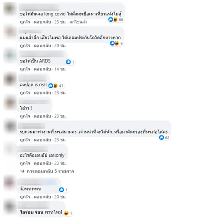 ทำให้มีชาวเน็ตเข้ามาแสดงความคิดเห็น และตั้งข้อสังเกตว่า ลูกค้าอาจจะต้องการเรียกเคลมประกันโควิด เจอ จ่าย จบ ขณะที่บางคนมองว่า การได้รับเงินประกันอาจจะไม่คุ้ม เพราะอาจเอาไปติดพ่อ แม่ ลูก ส่วนอีกหนึ่งความเห็นบอกว่าขอให้ติดแล้วตาย เมียเอาเงินไปหาสามีใหม่ นอกจากนี้ยังบอกว่า ต้องมีใบรับรองโอนิครอนก่อนไหม เจอเดลต้าไปตายแน่ๆ