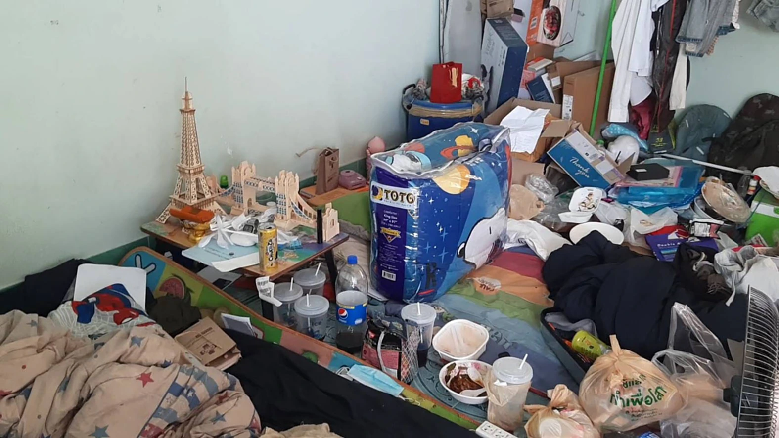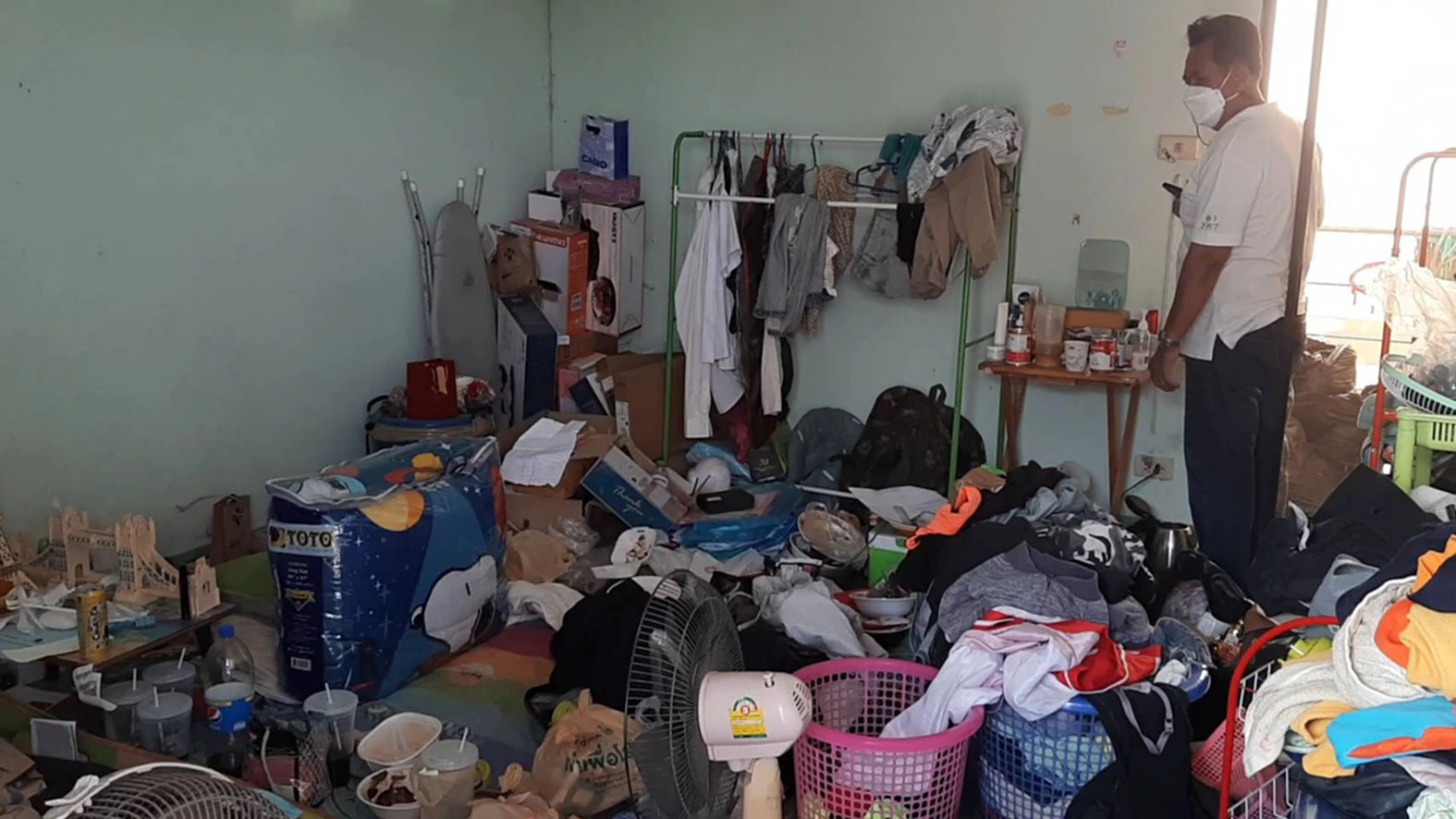 ล่าสุดเมื่อช่วงสายของวันนี้ที่ (26 ม.ค.65 ) ผู้สื่อข่าวได้เดินทางไปยังอพาร์ทเม้นท์ดังกล่าวและได้เข้าสอบถามเจ้าของอพาร์ทเม้นท์ ดังกล่าว โดยทางเจ้าของอพาร์ทเม้นท์ได้ให้แม่บ้านพาผู้สื่อข่าวขึ้นไปดูห้องที่เกิดเหตุ เมื่อเปิดประตูห้องเข้าไปผู้สื่อข่าวถึงกับอุทานว่าอยู่ได้ไง มันเป็นห้องพักหรือกองขยะกันแน่ เนื่องจากภายในห้องดังกล่าวมีแต่ถุงขยะกองเต็มไปทั้งห้องแม้กระทั่งในห้องครัวด้านหลังและห้องน้ำก็ยังมีถุงขยะกองอยู่ มีเพียงบริเวณที่นอนเท่านั้นที่เป็นพื้นที่โล่งและมีที่นอนปูอยู่กับพื้นร่วมทั้งอุปกรณ์ในการนอนเท่านั้น