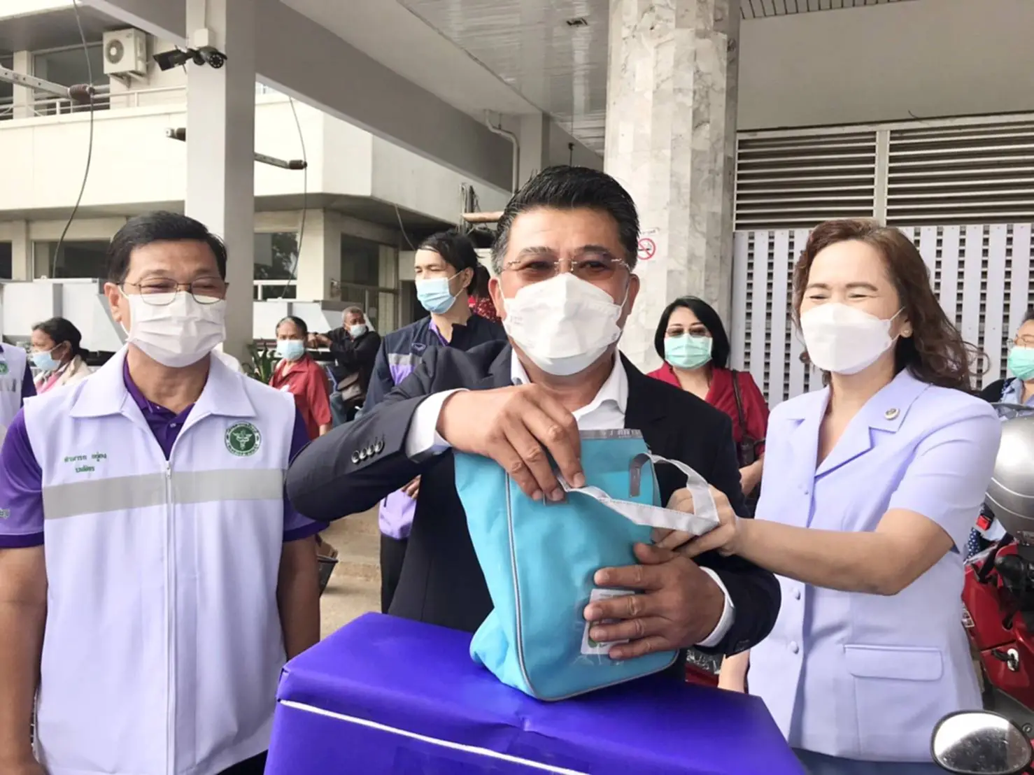 วันที่ 15 ก.พ. 2565 ที่ โรงพยาบาลชัยภูมิ นพ.ณรงค์ศักดิ์ บำรุงถิ่น ผู้อำนวยการ (หมอเหิม) ได้เป็นประธานพิธีเปิดและปล่อยขบวนรถมอเตอร์ส่งยา หรือGrab ยา โรงพยาบาลชัยภูมิ ไปส่งให้ผู้ป่วยตามใบนัดของแพทย์ โดยไม่ต้องมารับยาที่โรงพยาบาลชัยภูมิ ลดความแออัดของผู้ป่วยในช่วงโควิด-19ระบาด