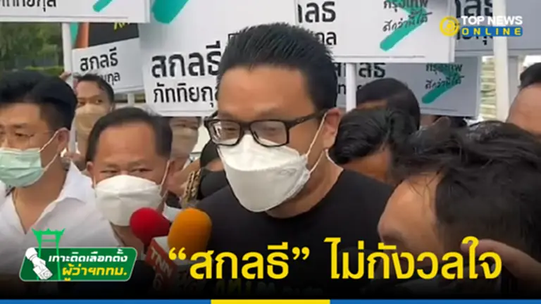 เมื่อถามว่า รู้สึกกังวลในตัวผู้สมัครคนอื่นหรือไม่ หลังจากที่มีการประกาศตัว นายสกลธี กล่าวว่า ไม่เลยครับ ตอนนี้เป็นการแข่งกับตัวเองและนำเสนอนโยบายให้กับประชาชนคนกทม. ส่วนพล.ต.อ.อัศวิน ขวัญเมือง อดีตผู้ว่าฯกทม. ที่มาลงสมัครรับเลือกตั้งผู้ว่าฯกทม.ในครั้งนี้ด้วยนั้น หากเจอกันตนก็จะทักทายสวัสดี เพราะถือเป็นอดีตผู้บังคับบัญชา ก็มีความเคารพท่านอยู่ สำหรับเรื่องหมายเลขนั้น ตนมองว่าได้หมายเลขไหนก็ไม่สำคัญ ถ้าประชาชนเลือกได้หมายเลขไหนประชาชนก็จำได้อยู่แล้ว แต่ถ้าได้เลขที่นำไปต่อยอดนโยบายได้ เช่นเลข 6 ก็ถือว่าเป็นเรื่องดี