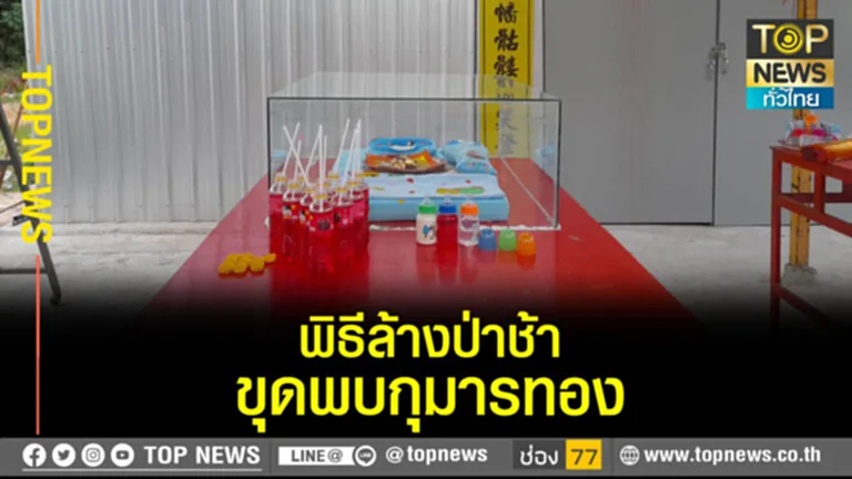 สาธุชนและผู้มีจิตศรัทธาที่มาร่วมงาน ขุดทอง หรือล้างป่าช้า ก็ได้ขุดพบกุมาร ชาย 1 ร่าง ขึ้นมาจากหลุม ซึ่งมีสภาพไม่เน่าไม่เปื่อย แขน ขา อวัยวะครบน่าจะถูกนำมาฝังไว้ไม่ต่ำกว่า 5 ปีแล้ว เมื่อประชาชนที่มาร่วมงานล้างป่าช้าทราบว่าพบกุมารทองต่างฮือฮาและเหลือเชื่อกับสิ่งที่พบเจอ หลังถูกฝังมานานในดินแต่กับมาสภาพไม่เน่าไม่เปื่อยไปตามกาลเวลา และเมื่อนำร่างกุมารมาถึงพุทธสมาคมเพียวเยี้ยงไท้ศรีราชาประชาชนที่ทราบก็ต่างพากันนำนมและน้ำดื่มมาให้ กุมารทองดื่ม ตามความเชื่อในการเสริมความเป็นสิริมงคลให้กับตัวเองและครอบครัวอีกด้วย และอีกอย่างที่ขาดไม่ได้คือการขอโชคลาภ โดยคณะประทับทรงที่ไปชี้จุดที่มีศพฝังอยู่ นั้นได้ชี้ถูกต้องทุกจุดไม่พลาดเลยแม้แต่จุดเดียวตั้งแต่เปิดงานล้างป่าช้ามา 9 วัน แล้ว ซึ่งกุมารทอง ที่ขุดเจอ ทางคณะกรรมการ ได้นำมาตั้งไว้ที่หน้าห้องเก็บกระดูก โดยใส่ตู้กระจกอย่างดี เพื่อให้ประชาชนได้มาชมและซื้อของมาเซ่นไหว้ได้ทุกวันตลอดการจัดงานล้างป่าช้าเพื่อทำพิธีขุดศพไร้ญาติที่ถูกฝังไว้ในป่าช้าหรือสุสาน เข้าสู่ขั้นตอนของการประกอบพิธีฌาปนกิจส่งดวงวิญญาณไปสู่สุคติ