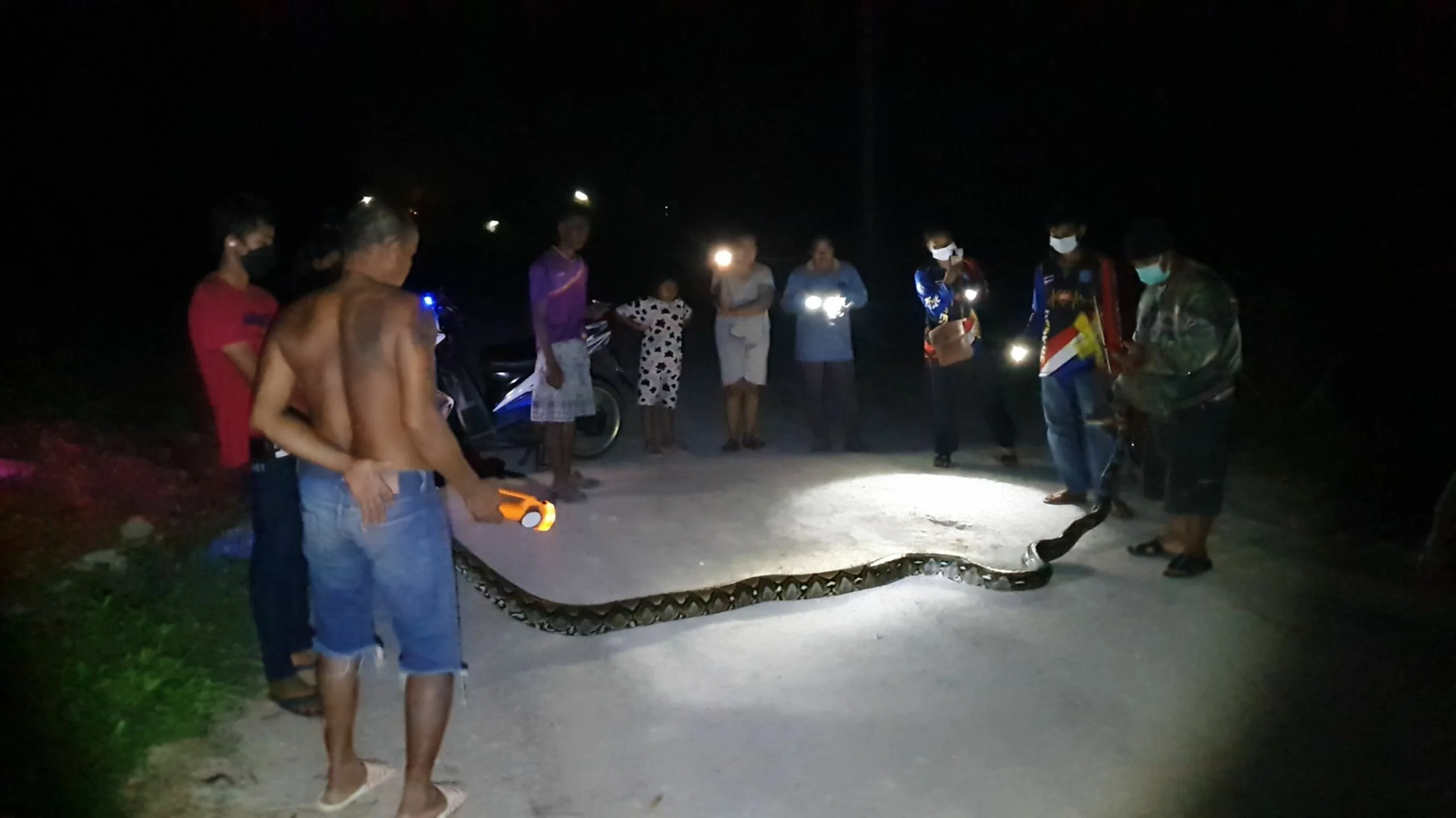 ชาวบ้านเล่าว่า ก่อนเกิดเหตุได้รับแจ้งจากคนในซอยว่าพบงูเหลือมยักษ์นอนขวางถนน ก่อนมาแจ้งให้ตนไปช่วยจับพออออกมาดูพบว่าเป็นงูเหลือมขนาดใหญ่ตนจับคนเดี่ยวไม่ไหวและชาวบ้านที่มาด้วยก็ไม่กล้าจับ จึงแจ้งทีมอาสาสมัครดังกล่าวให้มาช่วยเหลือ เบื้องต้นได้นำงูเหลือมยักษ์ตัวดังกล่าวไปปล่อยคืนสู่ทำธรรมชาติห่างจากแหล่งท่องเที่ยว และชุมชนหลายกิโลเมตร เพื่ออนุรักษ์ไว้ต่อไป