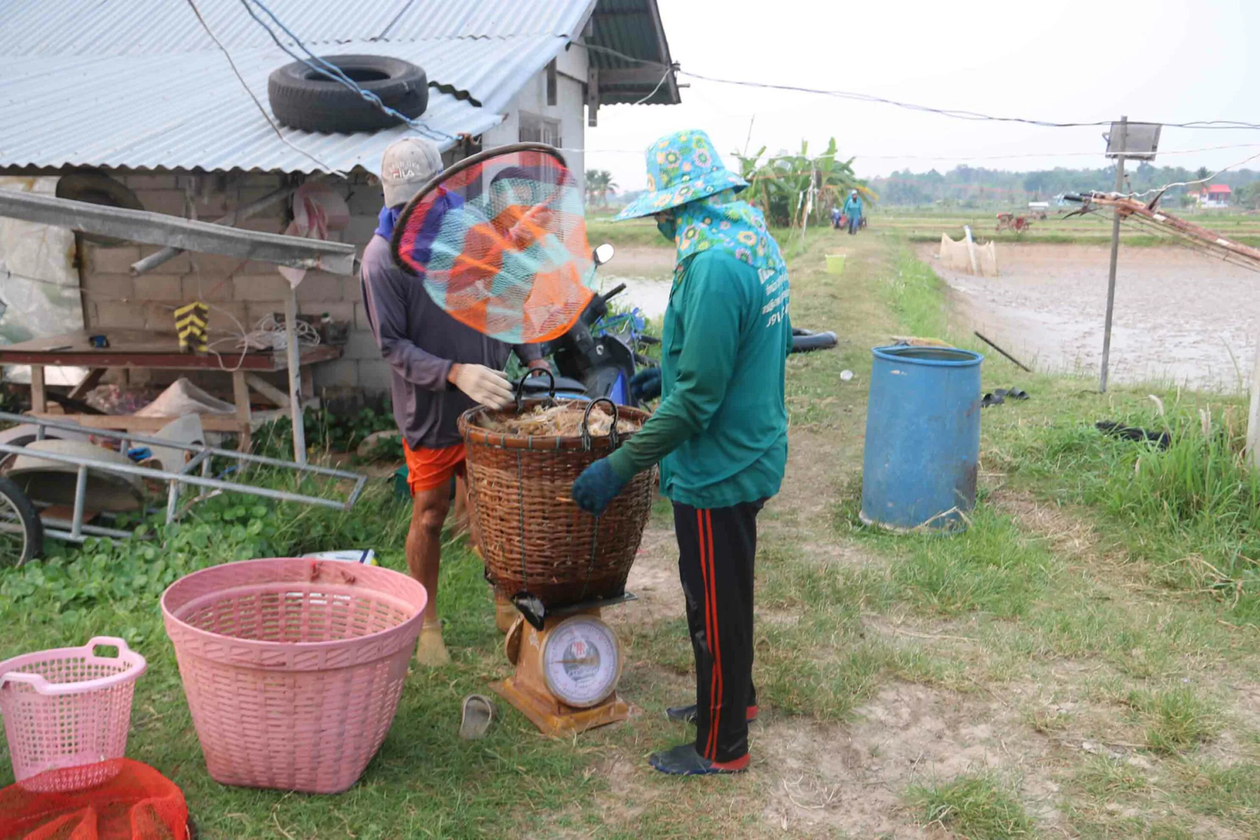 นายอาทิตย์ ภูบุญเติม อายุ 52 ปี เกษตรกรผู้เลี้ยงกุ้งก้ามกรามบ้านตูม หมู่ 4 ต.บัวบาน อ.ยางตลาด จ.กาฬสินธุ์ กล่าวว่า บรรยากาศการจับกุ้งก้ามกรามจำหน่ายก่อนเริ่มต้นเทศกาลสงกรานต์ เริ่มกลับมาคึกคักอีกครั้ง เนื่องจากหลายพื้นที่ได้มีการผ่อนคลายมาตรการโควิด-19 เพื่อเตรียมเข้าสู่โรคประจำถิ่น หลังจากก่อนหน้านี้ซบเซามาตั้งแต่หลังเทศกาลปีใหม่ที่ผ่านมา และสถานการณ์โควิด-19 ทั้งนี้ ตนได้สำรองกุ้งก้ามกราม ที่ได้ขนาดจับจำหน่ายเฉลี่ย 20-25 ตัว/กก. เพื่อจำหน่ายในเทศกาลสงกรานต์ประมาณ 2-3 ตัน โดยจะมีพ่อค้าจากต่างจังหวัดมาจองไว้ และนัดหมายมารับที่ปากบ่อเที่ยวละ 100-200 กก. โดยราคาขายส่งที่ปากบ่อ กก.ละ 250 บาท ขณะที่พ่อค้าคนกลางจะบวกเพิ่มค่าขนส่งอีก กก.ละ 20-30 บาท ตามระยะทาง ทั้งนี้จากการสอบถามพ่อค้าคนกลาง สถานการณ์โควิดที่ยังมีผู้ติดเชื้อผู้จำนวนมากก็ไม่ส่งผลกระทบกับบรรยากาศการซื้อขายในเทศกาลสงกรานต์ เพราะกุ้งก้ามกรามได้ชื่อว่าเป็นเมนูยอดฮิตในเทศกาลสงกรานต์ สามารถปรุงอาหารได้หลายเมนู และเป็นของฝากอีกด้วย