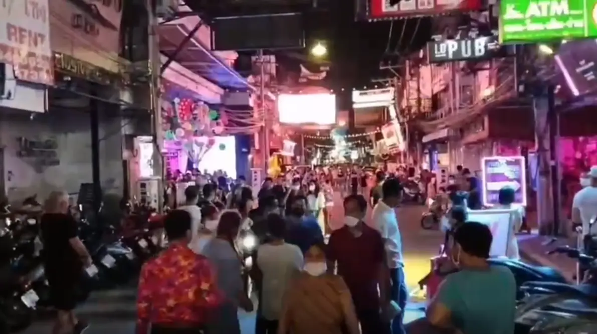 เวลา 22.00 น. วันที่ 13 เมษายน 2565 บรรยากาศนักท่องเที่ยวทั้งชาวไทยและต่างชาติ เข้ามาท่องเที่ยวเมืองพัทยาเป็นจำนวนมาก ในวันหยุดช่วงเทศกาลสงกรานต์ บริเวณถนนคนเดินวอคกิ้งสตรีท พัทยา ต.หนองปรือ อ.บางละมุง จ.ชลบุรี ซึ่งที่ผ่านมาก่อนมีการแพร่ระบาดของโรคโควิด-19 จะมีกลุ่มประชาชนนักท่องเที่ยว มาเล่นน้ำสงกรานต์กันเป็นจำนวนมาก และคึกคักโดยบรรดาร้านต่างๆที่อยู่ในพื้นที่จะเตรียมอุปกรณ์และน้ำให้นักท่องเที่ยวและลูกค้าได้เล่นกันอย่างสนุกสนาน แต่ในปีนี้กลับพบว่าบรรดาร้านค้าบ้างร้าน กลับปิดเงียบ ไม่เปิดให้บริการ