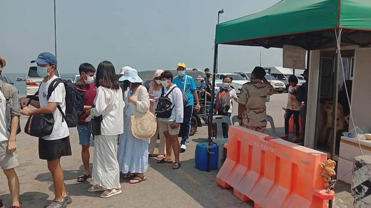 น.ส นารากร ตุกัง อายุ25ปี คนขายตั๋วขณะที่ผู้ประกอบการเรือโดยสารต้องเพิ่มเที่ยวเรือให้เพียงพอต่อจำนวนนักท่องเที่ยว โดยข้อปฏิบัติการควบคุมโรคอำเภอเกาะสีชัง เรื่อง มาตรการป้องกันและควบคุมโรคเพิ่มเติมในพื้นที่กรณีการเดินทางเข้าพื้นที่อำเภอเกาะสีชัง ได้ตั้งจุดคัดกรอง