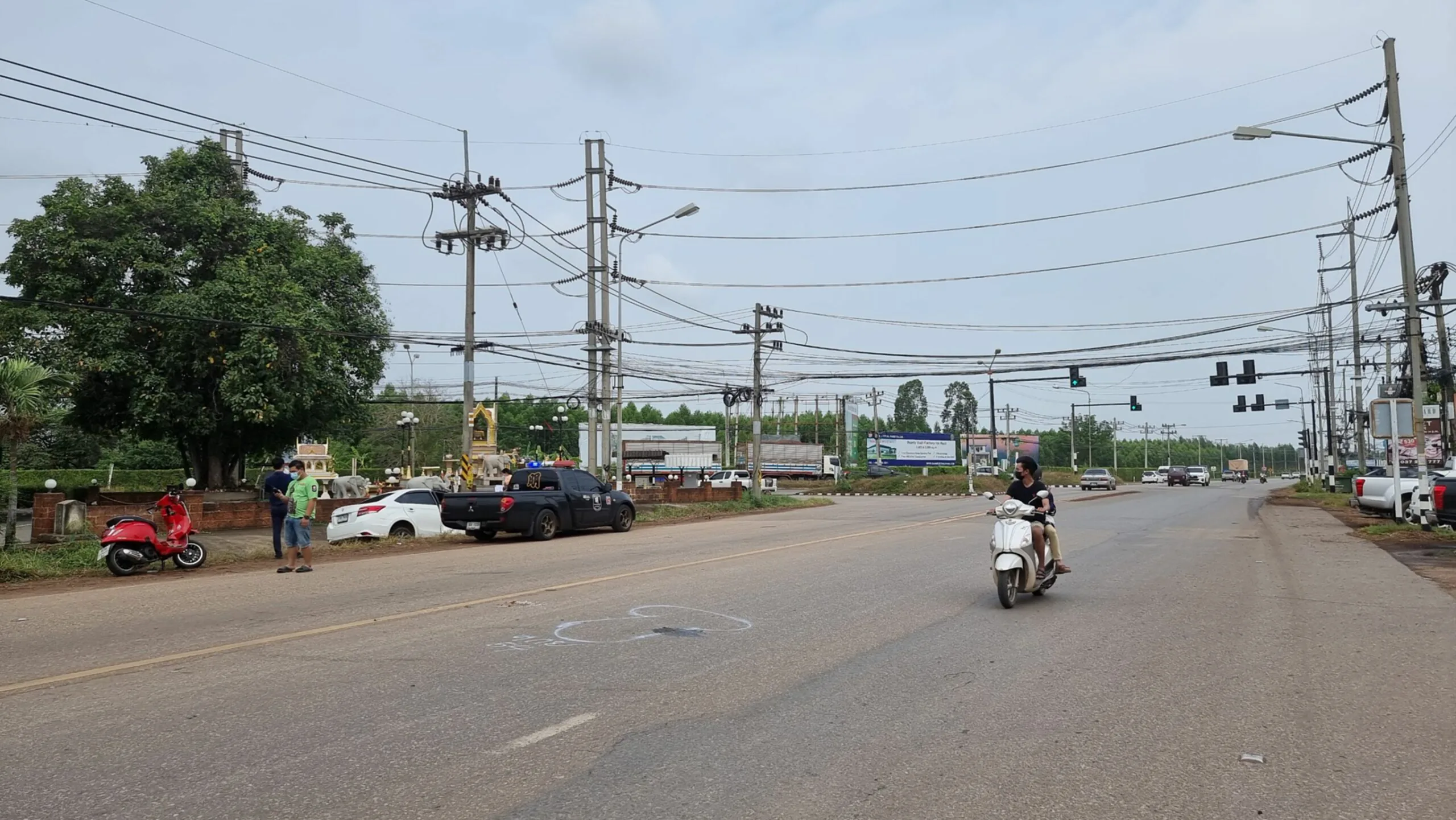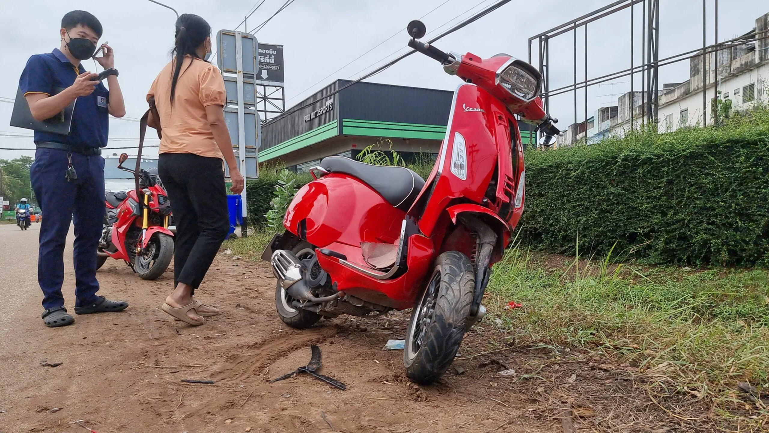 จากการตรวจสอบบริเวณที่เกิดเหตุเบื้องต้น พบรถจักรยานยนต์ เวสป้าสีแดง ทะเบียน 9 กย 54 กรุงเทพมหานคร นอนล้มตะแคงข้างอยู่บริเวณเส้นแบ่งกลางถนนสภาพด้านหน้าพังยับมีเศษชิ้นส่วนลดกระจัดกระจาย และยังมีกล่องกับข้าวแตกละเอียดอยู่ในจุดเกิดเหตุ ส่วนผู้บาดเจ็บอาสากู้ภัยนำส่งโรงพยาบาลก่อนหน้าทราบชื่อภายหลังนายชญานนท์ บริบูรณ์ทรัพย์ อายุ 30 ปี ได้รับบาดเจ็บขาทั้งสองข้างผิดรูป ห่างออกไปประมาณ 30 เมตรบริเวณข้างศาลพระหมณ์ พบรถเก๋งโตโยต้าวีออสสีขาว ทะเบียน กธ 7425 ปราจีนบุรี จอดนิ่งอยู่บริเวณคลองระบายน้ำข้างถนน สภาพประตูฝั่งคนขับยุบกระจกแตก คนขับได้รับบาดเจ็บกระจกบาดบริเวณใบหน้าทราบชื่อผู้บาดเจ็บนายไพรัช ทัศนาธร อายุ 56 ปี อาสาสมัครกู้ภัยนำส่งโรงพยาบาลไปก่อนหน้านี้