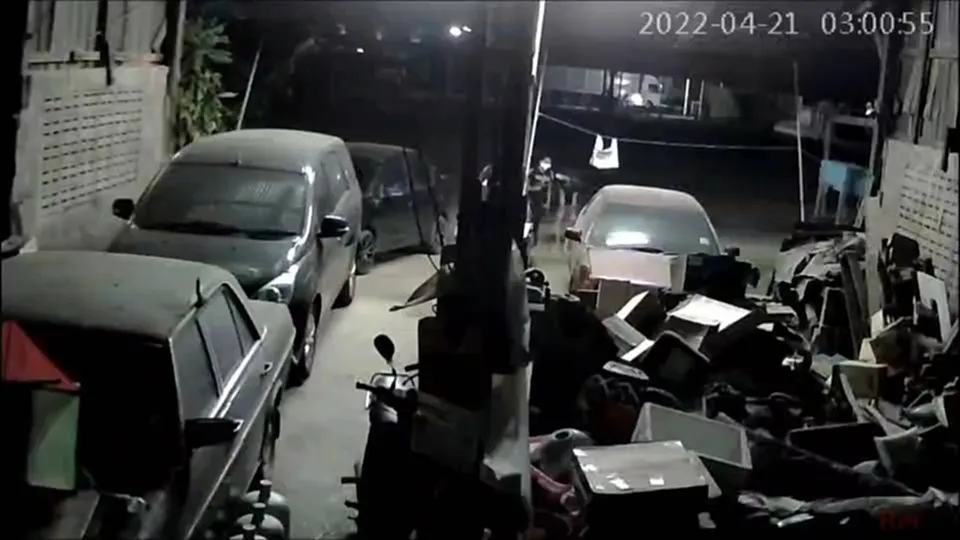 ซึ่งที่อู่ซ่อมรถแห่งนี้ก่อนหน้านั้นได้มีขโมยชายหญิงที่มีลักษณะคล้ายกันแบบนี้ได้เข้ามาขโมยอะไหล่รถไปเมื่อเวลาประมาณ 02.00 น. กว่าๆของวันที่ 19 เม.ย.65 ได้ของไปซึ่งมีมูลค่าเกือบแสนบาท และเมื่อวันที่ 8 เม.ย.65 ได้มีโจรชายหญิงเข้าไปขโมยของภายในโรงกลึงซึ่งมีลักษณะคล้ายๆกัน โดยผู้ชายจะใส่กางเกงขาสั้นสีม่วงเหมือนกันโดยขับรถยนต์เก๋งยี่ห้อโตโยต้าวีออส สีขาวไม่ติดแผ่นป้ายทะเบียน จากการตรวจสอบกล้องวงจรปิดภายในอู่ทำให้เห็นพฤติกรรมของชายหญิงคู่นี้ โดยทั้งคู่นั้นได้ขับรถมาจอดเลยหน้าอู่ไปหน่อยนึงเมื่อเวลาตอน 02.55 น. แล้วทั้ง 2 ได้เดินเข้ามาที่หน้าอู่เข้ามายืนดูของและพูดคุยกันโดยท่าทางของผู้หญิงนั้นได้ชี้มือเข้าไปในอู่ แล้วหลังจากนั้นทางผู้หญิงได้ชี้มือไปทางข้างอู่คล้ายชวนกันไปทางนั้นแล้วทั้ง 2 ก็เดินไปทางข้างอู่บริเวณลานซ่อมรถซึ่งตรงนั้นมีอะไหล่รถกองอยู่ ทั้ง 2 ได้พากันเดินเข้ามาบริเวณกองอะไหล่รถแล้วทำท่าคล้ายๆจะหยิบของ แต่ทางเจ้าของอู่นั้นได้ออกมาและสามารถควบคุมตัวไว้ได้  จากการสอบถาม นายพงษ์พรรณ ตั้งเจริญพูลผล อายุ 40 ปี (เจ้าของอู่) กล่าวว่าเมื่อเวลา 02:55 น.