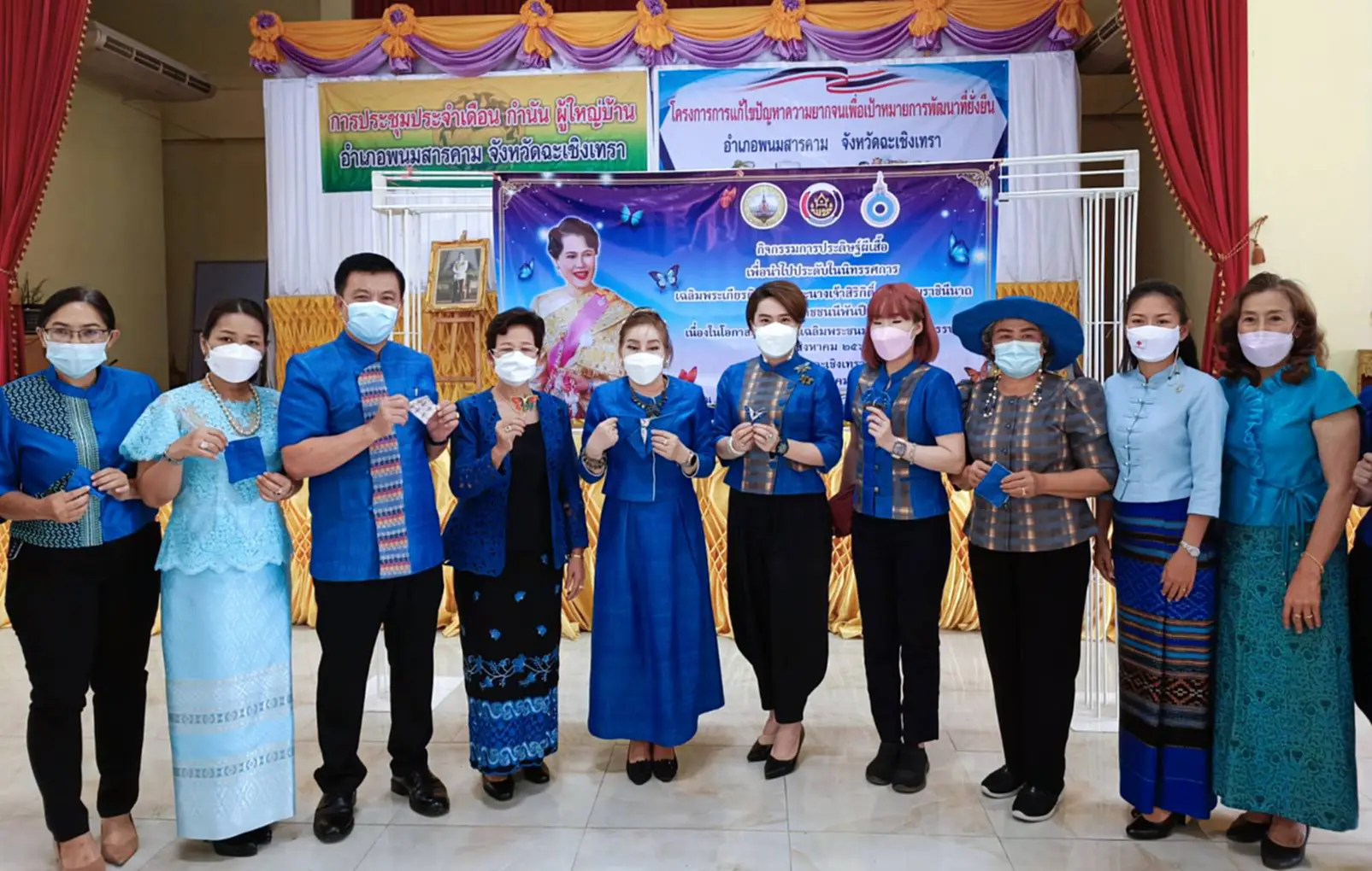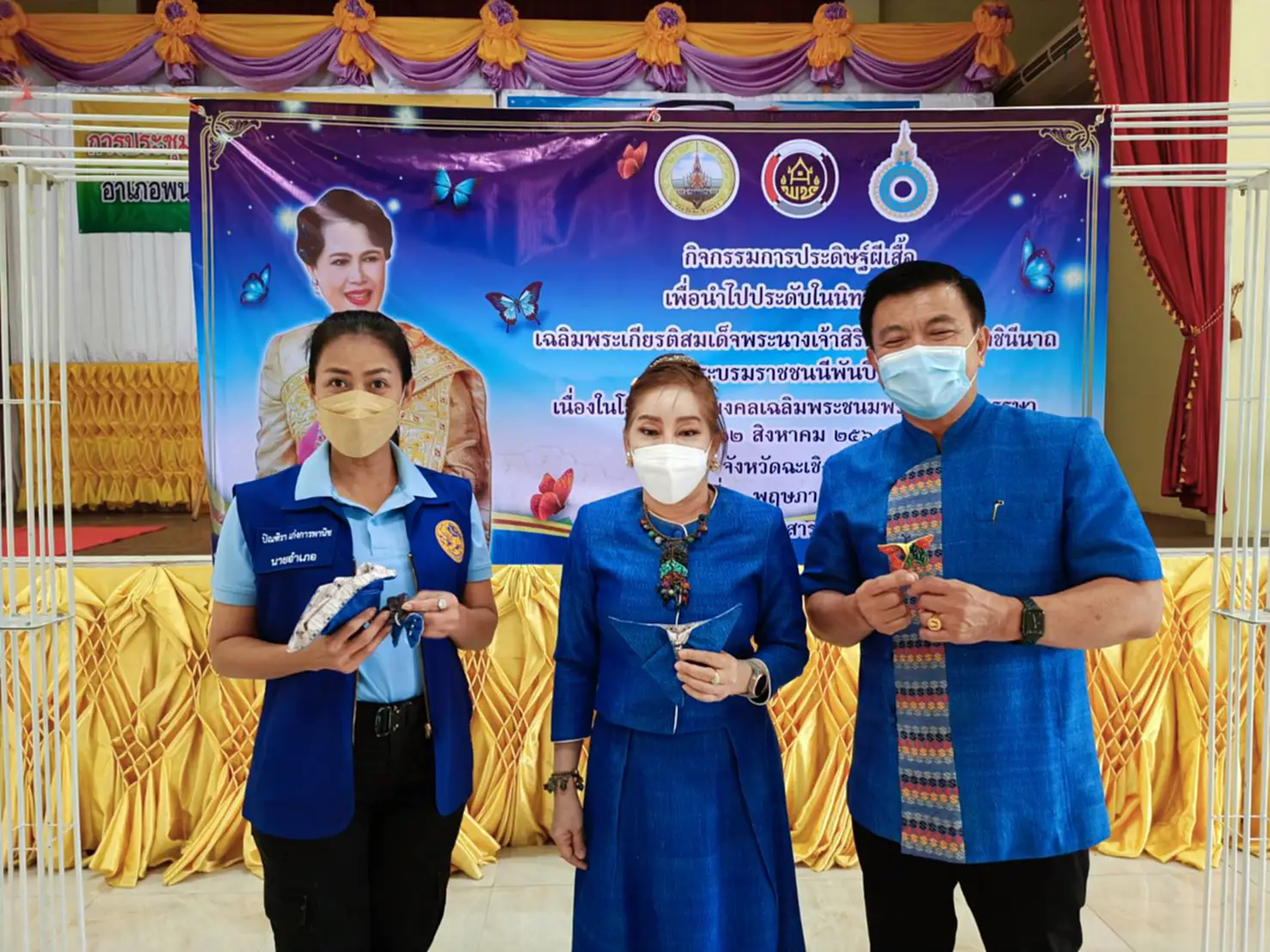 ด้วยการนำผ้าลายอัตลักษณ์ของจังหวัดฉะเชิงเทรา มาประดิษฐ์เป็นผีเสื้อขนาดและสีต่าง เพื่อร่วมเป็นส่วนหนึ่งของการจัดนิทรรศการเฉลิมพระเกียรติฯ ระหว่างวันที่ 1 – 15 สิงหาคม 2565 ณ บริเวณถนนราชดำเนินกลาง ซึ่งจัดโดยกระทรวงมหาดไทย โดยทุกคนต่างลงมือทำด้วยความประณีตและตั้งใจ ผีเสื้อที่เห็นจึงเปรียบเสมือนตัวแทนชาวฉะเชิงเทรา ที่มีความจงรักภักดีและน้อมสำนึกในพระมหากรุณาธิคุณอย่างไม่เสื่อมคลาย