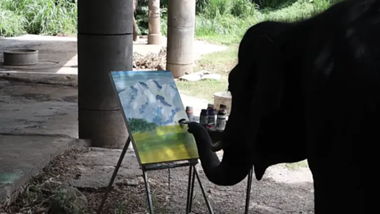 น้องธันวา ช้างพลายวัย 9 ปี ในปางช้างแม่แตง จ.เชียงใหม่ กำลังตวัดแปรงลงสีบนเฟรมผ้าใบแคนวาส ขนาดกลาง เป็นรูปทิวทัศน์ธรรมชาติ ที่มีทั้งภูเขา ต้นไม้ และช้าง อย่างคล่องแคล่ว และมีลายเซ็นของตนเองเป็นภาษาอังกฤษตัวย่อ T W เพื่อนำฝีมือภาพจิตรกรรมจากช้างน้องธันวา ไปประมูลทางออนไลน์ เพจเฟซบุ๊กของทางปางช้างแม่แตง ในราคาเริ่มต้นภาพละ 3,000 บาท เพื่อนำไปช่วยเหลือช้างชื่อ “ดัมโบ้” อายุ 6 ปี ซึ่งขณะนี้เกิดป่วย