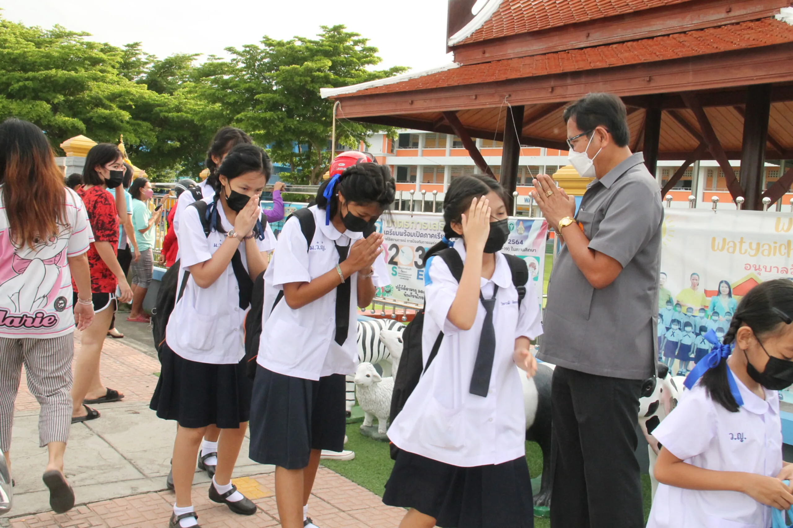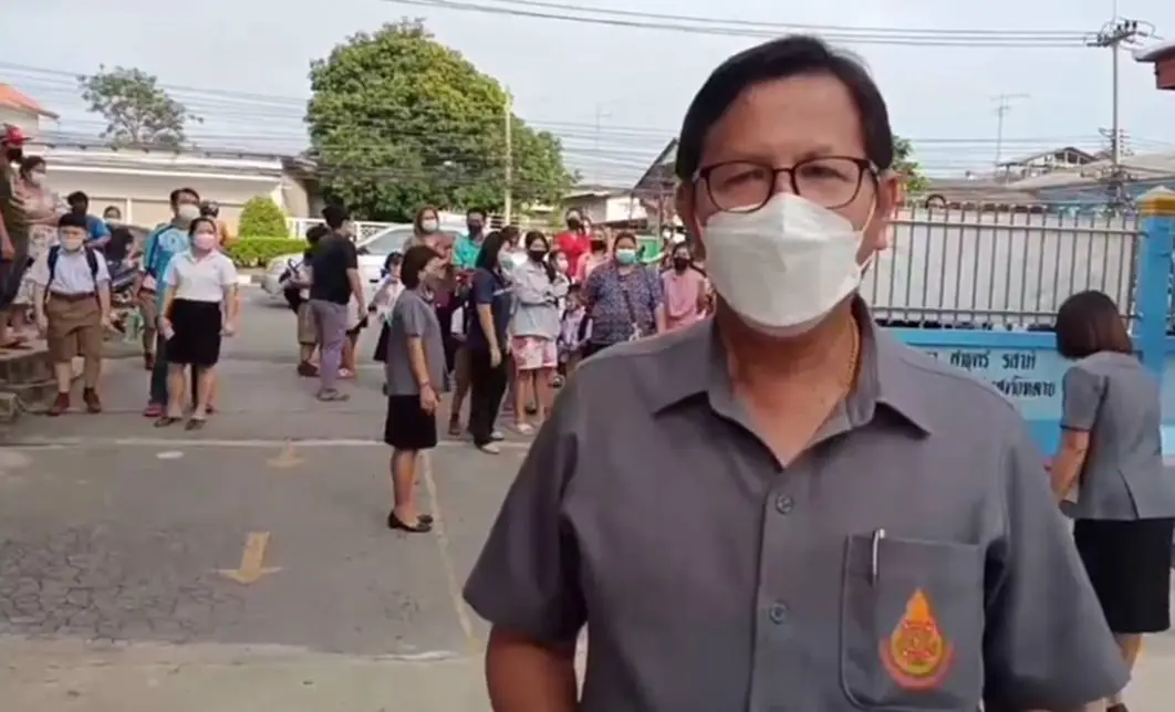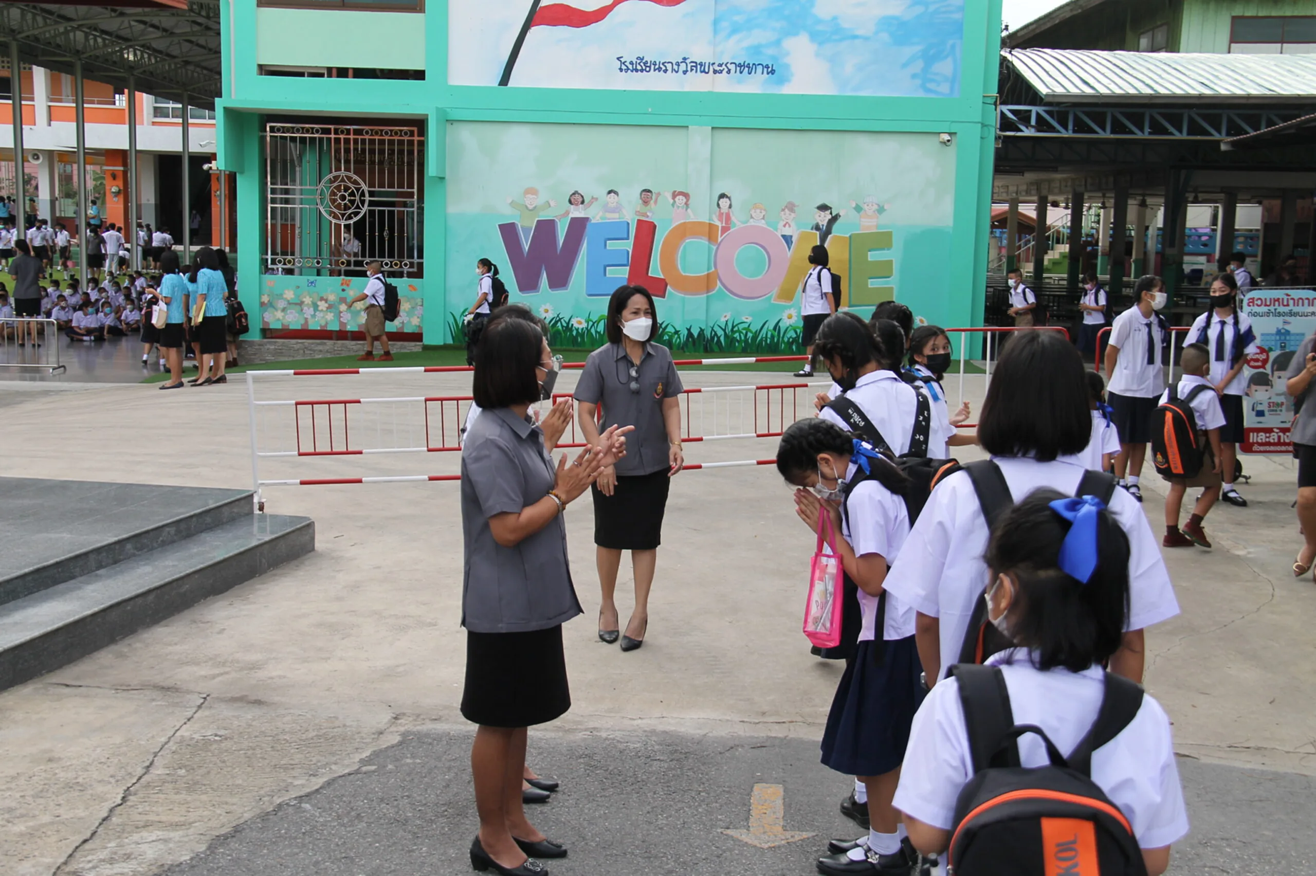 วันที่ 17 พ.ค.65 ผู้สื่อข่าวรายงานบรรยากาศการเปิดเรียนวันแรก ที่โรงเรียนวัดใหญ่ชัยมงคล (ภาวนารังสี) อำเภอพระนครศรีอยุธยา จังหวัดพระนครศรีอยุธยา ผู้ปกครองของนักเรียนมาส่งลูกๆหลานมาเรียนในการเปิดเทอมออนไซต์เต็มรูปแบบ โดยมีนายแทน เฉลยไตร ผู้อำนวยการโรงเรียนวัดใหญ่ชัยมงคล (ภาวนารังสี) และ คุณครู รอต้อนรับ อย่างอบอุ่นในระบบ New Normal ที่โรงเรียนมีมาตรการหลัก มาตรการรอง ในการป้องกันการกระจายของเชื้อโควิด-19 บรรยากาศการเปิดเรียนวันนี้ดูคึกคักมาก นักเรียนจำนวนมากรู้สึกตื่นเต้นอยากมาโรงเรียน อยากมาพบครู มาเจอเพื่อน เพราะปิดเทอมยาว และเรียนออนไลน์นานร่วมเทอม จากการแพร่ระบาดของโควิด-19
