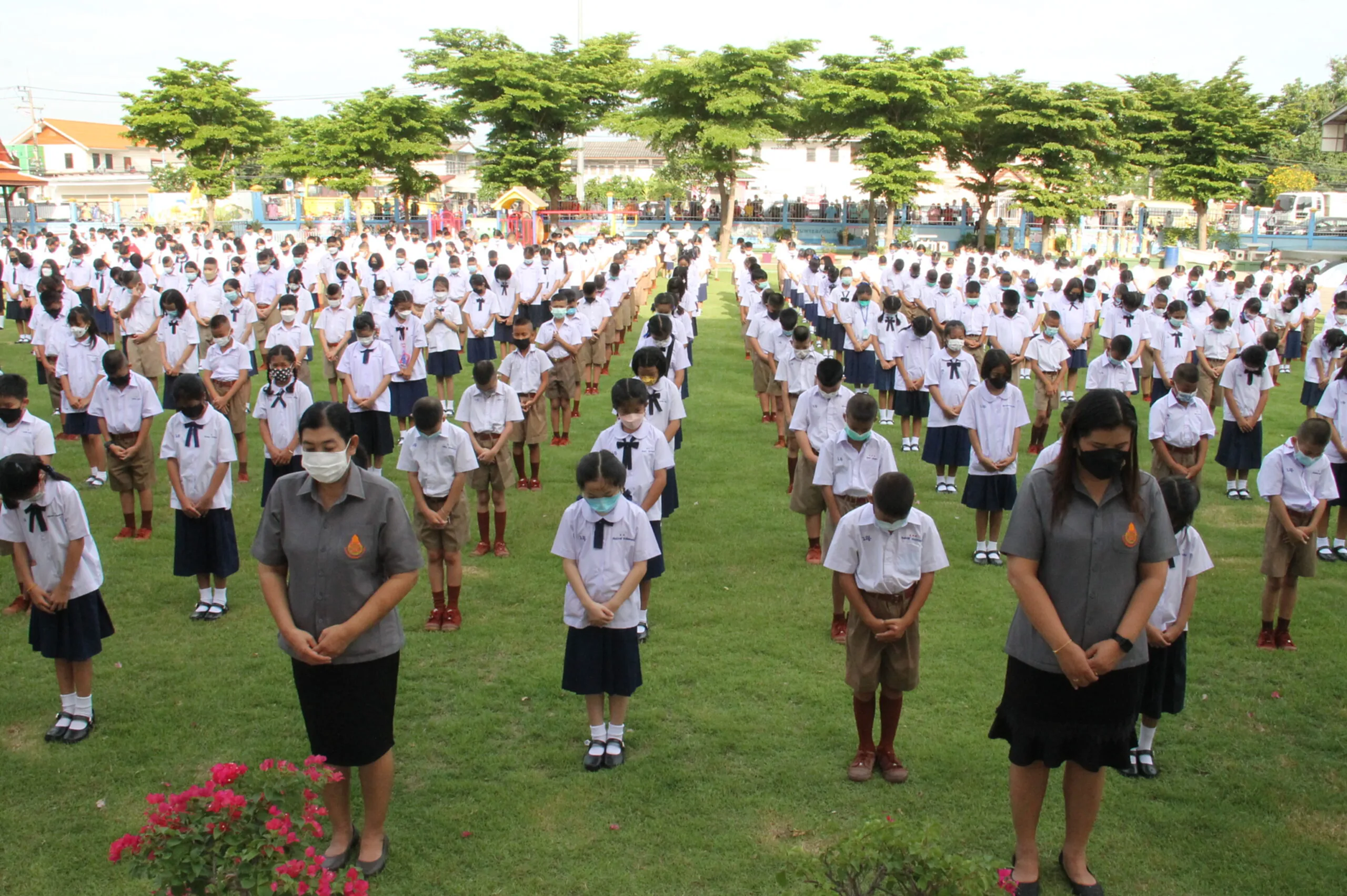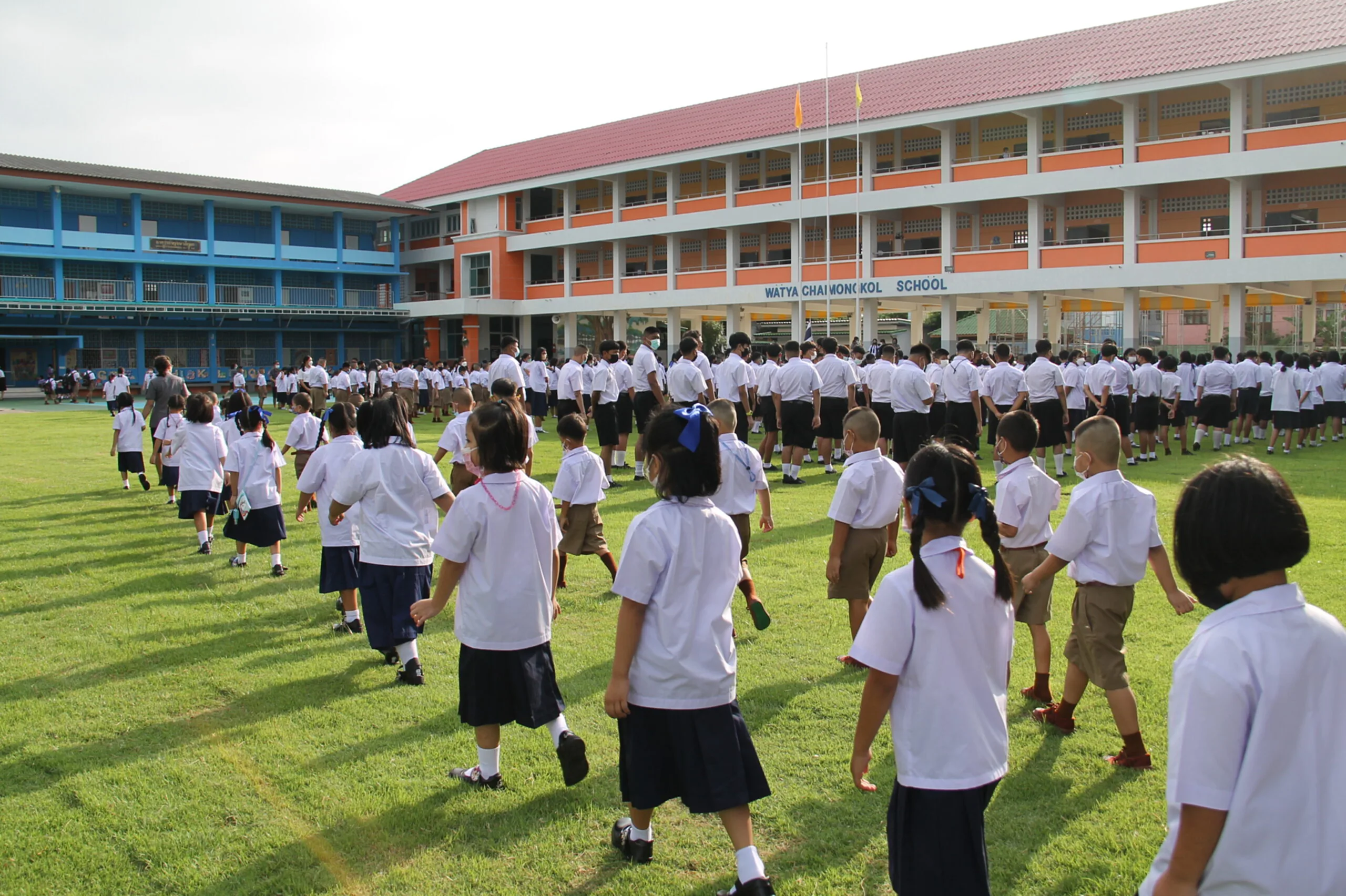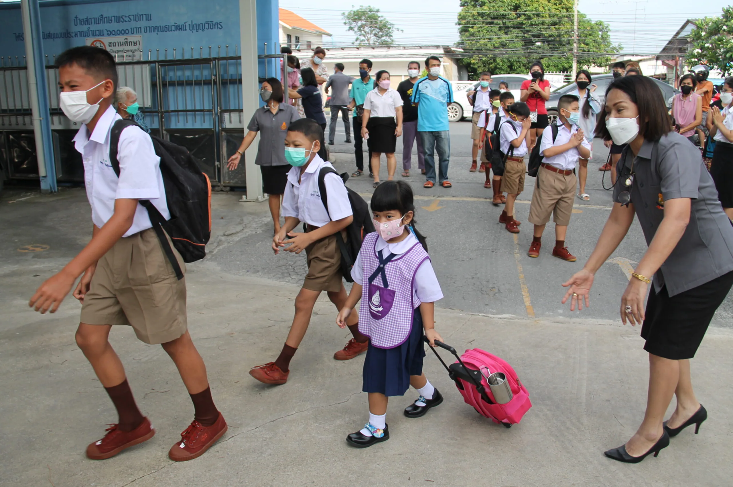 วันที่ 17 พ.ค.65 ผู้สื่อข่าวรายงานบรรยากาศการเปิดเรียนวันแรก ที่โรงเรียนวัดใหญ่ชัยมงคล (ภาวนารังสี) อำเภอพระนครศรีอยุธยา จังหวัดพระนครศรีอยุธยา ผู้ปกครองของนักเรียนมาส่งลูกๆหลานมาเรียนในการเปิดเทอมออนไซต์เต็มรูปแบบ โดยมีนายแทน เฉลยไตร ผู้อำนวยการโรงเรียนวัดใหญ่ชัยมงคล (ภาวนารังสี) และ คุณครู รอต้อนรับ อย่างอบอุ่นในระบบ New Normal ที่โรงเรียนมีมาตรการหลัก มาตรการรอง ในการป้องกันการกระจายของเชื้อโควิด-19 บรรยากาศการเปิดเรียนวันนี้ดูคึกคักมาก นักเรียนจำนวนมากรู้สึกตื่นเต้นอยากมาโรงเรียน อยากมาพบครู มาเจอเพื่อน เพราะปิดเทอมยาว และเรียนออนไลน์นานร่วมเทอม จากการแพร่ระบาดของโควิด-19