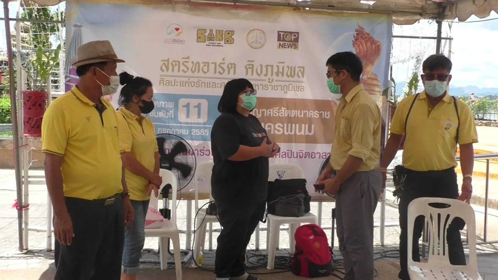 นครพนม แฟนข่าวท็อปนิวส์ ให้กำลัง และนำอาหาร เครื่องดื่มมอบให้ ศิลปินจิตอาสา ซึ่งเริ่มวาดภาพในหลวงรัชกาลที่ 9 และในหลวงรัชกาลที่ 10
