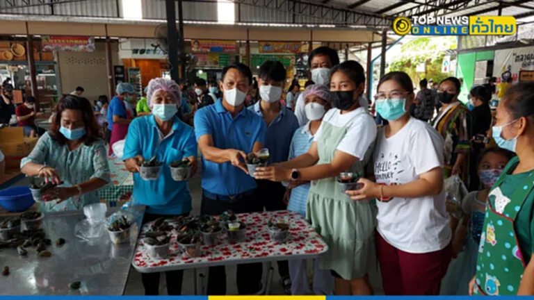 สอบถามนายวินัย พ้นภัยพาล นายกเทศมนตรีเทศบาลเมืองอ่างศิลา เปิดเผยว่า การจัดเทศกาลกินหอยแมลงภู่ ได้หยุดไปตอนที่ไวรัสโควิด 19 ระบาดในปีนี้ตนอยากจะส่งเสริมอาชีพประมงเลี้ยงหอยแมลงภู่ ซึ่งจะจัดกิจกรรมแบบนี้ทุกปี ในตลาดจะมีของทะเลสดๆ ไว้บริการลูกค้า ถ้าลูกค้าซื้อของทะเลแล้วได้ของไม่สดสามารถร้องเรียนได้ที่ เพจเทศบาลเมืองอ่างศิลา และเพจตลาดประมงพื้นบ้านอ่างศิลา จะสามารถรับเงินคืนได้ ในวันนี้ทางตลาดร่วมกับผู้ค้าในตลาด และชาวประมงเลี้ยงหอยในตำบลอ่างศิลา ร่วมแจกหอยแมลงภู่ต้ม 4,500 กิโลกรัม กุ้งต้ม 200 กิโลกรัม น้ำอัญชัน น้ำดื่ม น้ำอ้อย ขนมหวาน แก่ประชาชนที่มาเดินเลือกซื้อสินค้าทะเลสดๆภายในตลาดอีกด้วย