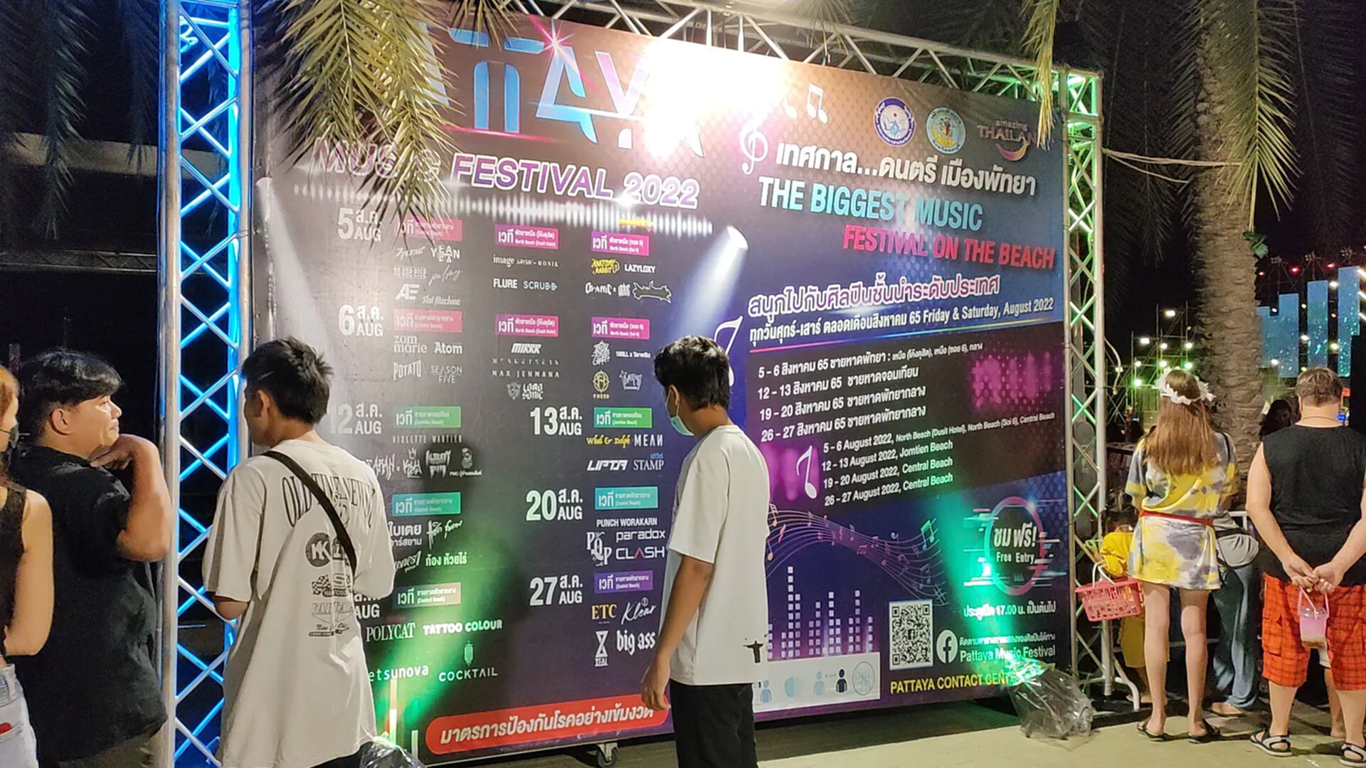 วันที่ 20 สิงหาคม 2565บรรยาศ เทศกาลดนตรีเมืองพัทยา Pattaya Music Festival 2022 ที่ บริเวณชายหาดพัทยากลาง อ.บางละมุง จ.ชลบุรี พบว่านักท่องเที่ยวทั้งชาวไทย และชาวต่างชาติ ได้พากันออกมาเดินพักผ่อนฟังเพลงกันอย่างคึกคัก