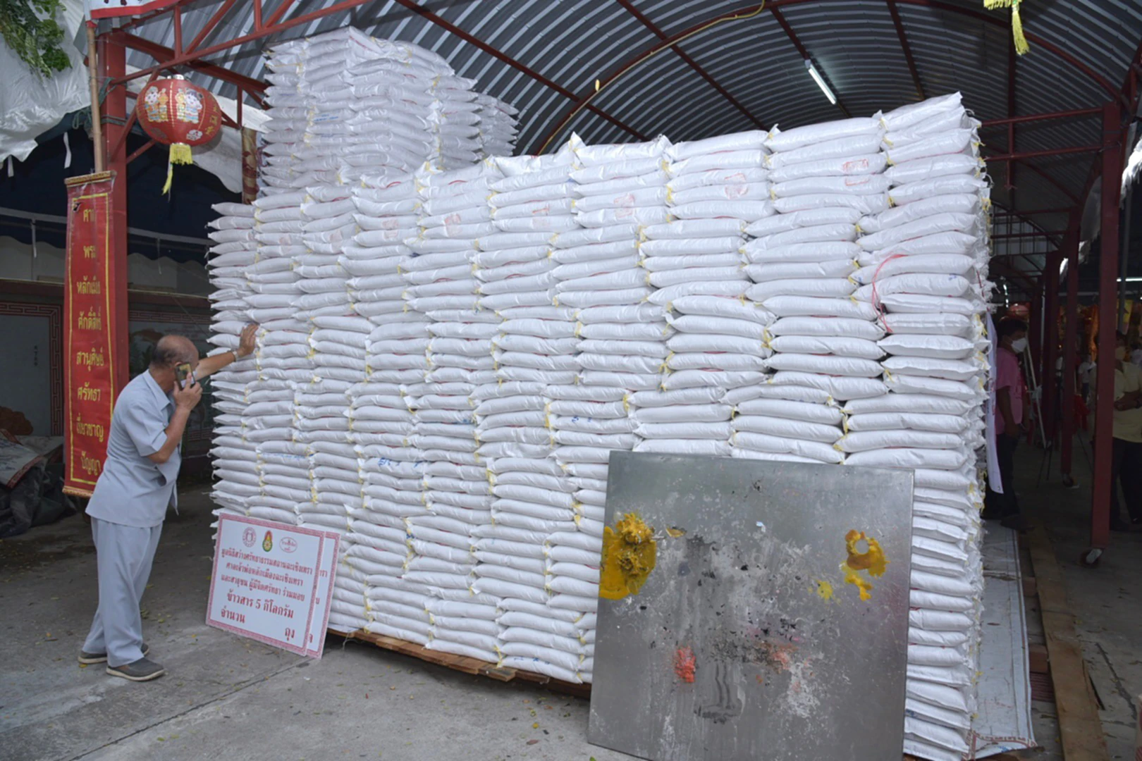 โดยข้าวสารที่นำมาแจก ทางศาลเจ้าพ่อหลักเมืองฉะเชิงเทราได้รับการบริจาคจาก ภาครัฐ เอกชน พ่อค้า ประชาชน ผู้มีจิตศรัทธา ในจังหวัดฉะเชิงเทรา ทั้งนี้ เพื่อเป็นการช่วยเหลือชุมชน แบ่งเบาภาระค่าใช้จ่ายของคนยากจน คนพิการ ผู้สูงอายุ ผู้ยากไร้ ผู้ด้อยโอกาสที่เดือดร้อนในจังหวัดฉะเชิงเทรา