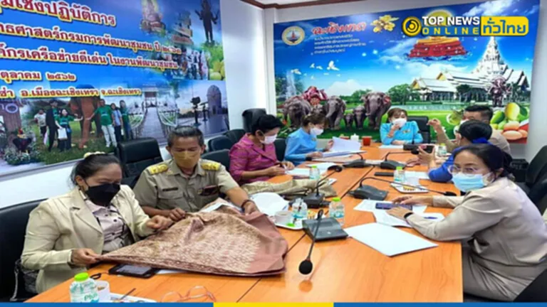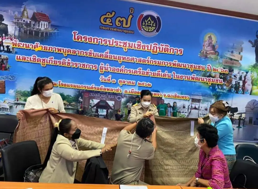 ที่ ห้องประชุมสำนักงานพัฒนาชุมชนจังหวัดฉะเชิงเทรา นางจันทรรัตน์ ไตรติลานันท์ ประธานแม่บ้านมหาดไทยจังหวัดฉะเชิงเทรา เป็นประธานการประชุมฯ พร้อมด้วยนายวรนัฐ ติรประเสริฐสิน พัฒนาการจังหวัดฉะเชิงเทรา นางสรัลนุช โพธิ์ชัยโย ผู้อำนวยการกลุ่มงานยุทธศาสตร์การพัฒนาชุมชน และคณะกรรมการฯ เข้าร่วมประชุมฯ นายวรนัฐกล่าวว่ากรมการพัฒนาชุมชน ได้จัดทำโครงการสร้างการรับรู้ภูมิปัญญาผ้าไทยและผ้าขิดลายพระราชทาน โดยจัดพิธีมอบแบบผ้าลายพระราชทาน “ผ้าขิดลายนารีรัตนราชกัญญา” โดยปลัดกระทรวงมหาดไทย มอบให้กับผู้ว่าราชการจังหวัดและประธานแม่บ้านมหาดไทยจังหวัด ทั้ง 76 จังหวัด เพื่อนำไปมอบต่อให้กับช่างทอผ้า และกลุ่มผู้ผลิต ผู้ประกอบการ OTOP ประเภทผ้าและเครื่องแต่งกาย ภายในจังหวัด ทั้งนี้ กรมการพัฒนาชุมชน ได้รับมอบหมายจากปลัดกระทรวงมหาดไทย ดำเนินการส่งมอบแบบผ้าลายพระราชทานให้กับกลุ่มทอผ้า ใน 76 จังหวัด ได้นำไปเป็นต้นแบบและพัฒนาต่อ ยอดไปสู่เครื่องแต่งกาย ของใช้ ของประดับตกแต่ง ตามวิถีที่เป็นเอกลักษณ์ประจําถิ่น ตามพระดำริ “ผ้าไทยใส่ให้สนุก” คือ ความสุขที่ได้เลือกใช้ศิลปะ หัตถกรรมไทย เพื่อให้รายได้กลับเข้าสู่ชุมชน และส่งเสริม กระตุ้น ผ้าไทยให้ทันสมัยสู่สากลเป็นที่นิยมในทุกเพศทุกวัย และทุกโอกาส โดยจัดประกวดผ้าลายพระราชทาน “ผ้าขิดลายนารีรัตนราชกัญญา” ประจำปี 2565 เพื่อสืบสานพระราชปณิธานสมเด็จพระนางเจ้าสิริกิติ์ พระบรมราชินีนาถ พระบรมราชชนนีพันปีหลวง ในเรื่องการอนุรักษ์ภูมิปัญญาท้องถิ่นของไทย