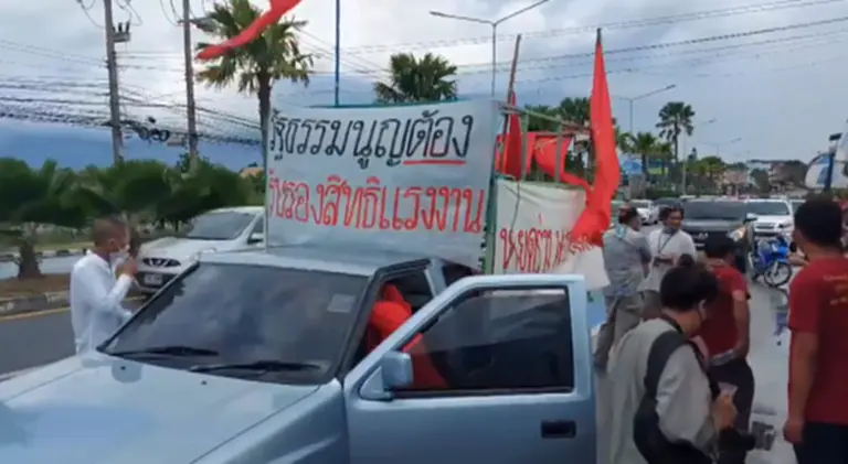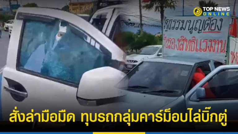 ต่อมา เมื่อเวลา 13.00 น. (ของวันเดียวกัน) ขณะที่คาร์ม็อบกลุ่มพัฒนาแรงงานสัมพันธ์ตะวันออก ทำกิจกรรมผ่านมาถึงบริเวณหน้าโรงน้ำปลาจิ้วฮวด ถนนบางแสน-อ่างศิลา ตำบลแสนสุข อำเภอเมือง จังหวัดชลบุรี ได้มีกลุ่มรถจักรยานยนต์ เบื้องต้นยังไม่ทราบว่าผู้ใดเป็นผู้ขับขี่ จำนวน ประมาณ 30 คัน ได้ใช้ของแข็ง ลักษณะคล้ายไม้กอล์ฟ ทุบตีกระจกรถยนต์ที่มาร่วมกิจกรรมคาร์ม็อบ จนรถยนต์ได้รับความเสียหายจำนวนหลายคัน และมีผู้ได้รับบาดเจ็บ จากนั้นกลุ่มรถจักรยานยนต์ ดังกล่าวได้พากันหลบหนีไป