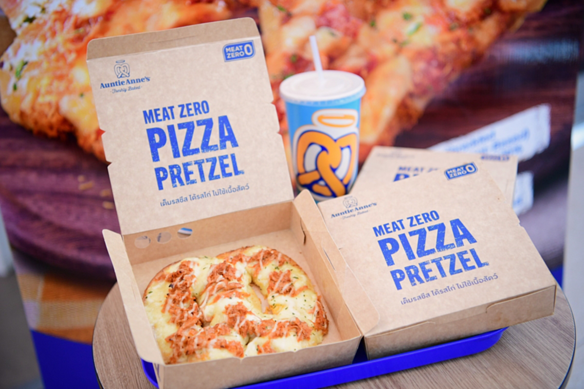 MEAT ZERO (มีท ซีโร่) ผลิตภัณฑ์เนื้อจากพืช จาก บริษัท เจริญโภคภัณฑ์อาหาร จำกัด (มหาชน) หรือซีพีเอฟ จับมือ Auntie Anne’s (อานตี้ แอนส์) ผู้นำตลาดซอฟท์เพรทเซลในประเทศไทย โดย บริษัท เซ็นทรัล เรสตอรองส์ กรุ๊ป จำกัด หรือ ซีอาร์จี ต่อยอดความสำเร็จรุกตลาด Plant-Based เปิดตัวเมนูสุดพิเศษ ‘MEAT ZERO Pizza Pretzel’ (มีท ซีโร่ พิซซ่า เพรทเซล) ชีส Mozzarella เข้มข้น รสชาติกลมกล่อมเหมือนเนื้อไก่จริง ตอบโจทย์ผู้บริโภคยุคใหม่ที่ให้ความสำคัญกับสุขภาพ และกลุ่มมังสวิรัติยืดหยุ่น (Flexitarian)