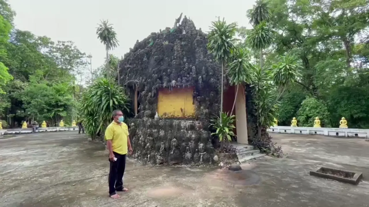 โดยนายทองจันทร์ พิชนะชล อายุ 53 ปี ผู้ใหญ่บ้านป่าตอง หมู่ 13 เปิดเผยว่า สำหรับความเก่าแก่ของโบสถ์ไหปลาร้านี้ สร้างมาตั้งแต่ปี พ.ศ.2521 สร้างโดยเจ้าอาวาสคนก่อนที่ชอบการก่อสร้างเป็นอย่างมาก เลยคิดไอเดียได้ว่าน่าจะโบสถ์แบบนี้ ซึ่งได้ขอรับบริจาคไหปลาร้าจากชาวบ้านมาเพื่อนำมาสร้างโบสถ์ โดยจะนำไหปลาร้าคาดว่าน่าจะจำนวนกว่า 1 พันใบมาวางเรียงกันบริเวณโบสถ์และได้นำปูนมาฉาบทับเพิ่มเติมจนออกมาอย่างในรูปที่เห็น ส่วนไหที่แตกก็นำมาวางเรียงด้านนอก จนเกิดความสวยงามและความแปลกสำหรับคนที่เข้ามาทำบุญในวัดแห่งนี้ด้วย นอกจากภายในวัดยังมีรูปปั้นต่างๆเช่น รูปปั้นงูเห่าที่ทำจากเหรียญบาท ที่ปฏิบัติธรรมของพระสงฆ์ที่ใช้ฝึกจิตสมาธิทำเป็นรูปทรงหัวกระโหลกที่ใช้สำหรับฝึกจิตใจด้วย ทั้งนี้หากใครอยากมาทำบุญหรืออยากเห็นของแปลกก็เดินทางมาได้ที่วัดป่าตองแห่งนี้ได้เลย