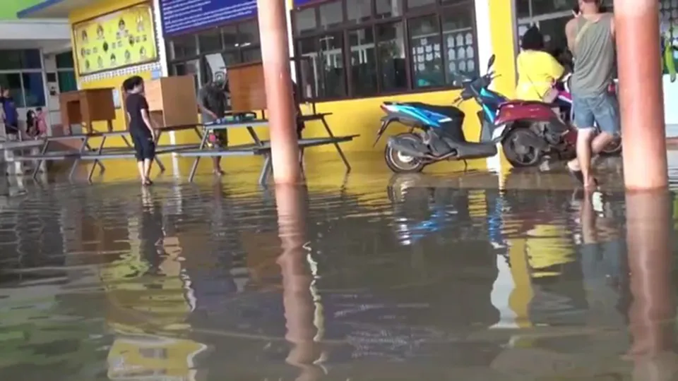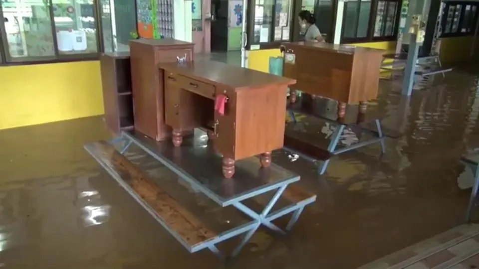 ส่วนระดับน้ำที่เพิ่มสูงขึ้นอย่างรวดเร็ว ได้ไหลเข้าท่วมโรงเรียนในเขตเทศบาลตำบลกบินทร์แล้วจำนวน 3 โรงเรียน เช่น โรงเรียนเจียหมิน โรงเรียนเทศบาล 1 โรงเรียนเทศบาล 2 (วัดใหม่ท่าพาณิชย์) อาคารเรียนถูกน้ำท่วมสิ้นเชิง ส่วนโรงเรียนเจียหมินต้องขนย้ายสิ่งของรวมทั้งอุปกรณ์การเรียนการสอนหนีน้ำไปไว้ยังที่สูง ส่วนนักเรียนทางโรงเรียนเร่งสอบเก็บคะแนนและปิดภาคเรียนไปก่อนหน้านั้นแล้ว นอกจากนี้ครูโรงเรียนเทศบาล 2 ทำวิกฤตให้เป็นโอกาสเก็บหอยเชอร์รี่ที่มากับน้ำบริเวณที่ถูกน้ำท่วมสนามฟุตบอลจำนวนมาก รวมทั้งผักบุ้งที่จมอยู่ใต้น้ำถอดยอดยาวโผล่เหนือน้ำ (ผักบุ้งชะลูดน้ำ)มาทำอาหาร ส่วนที่เหลือส่งขายแม่ค้าในตลาด