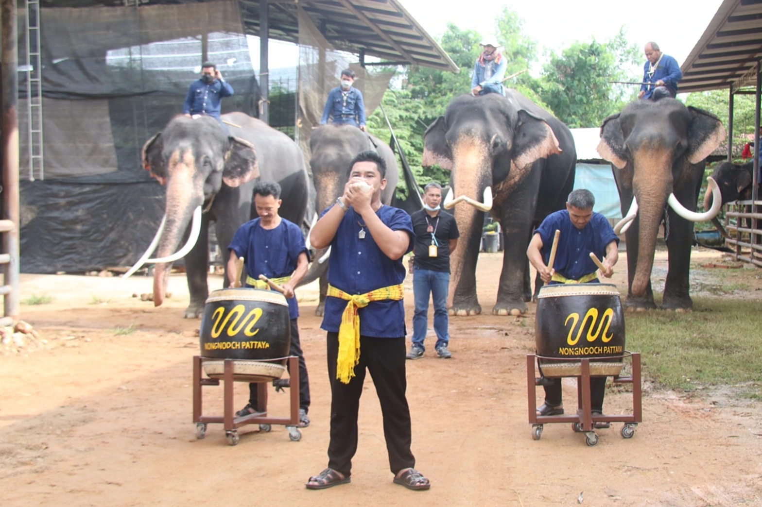 สวนนงนุชพัทยาจึงได้จัด พิธีคล้องพวงมาลัยรับขวัญช้างที่ได้จัดขึ้นทุกครั้งที่มีการให้กำเนิดช้างตัวใหม่ของปาง ทั้งนี้เพื่อความเป็นสิริมงคล จึงได้นิมนต์ท่าน พระครูเกษมกิตติโสภณ(อาจารย์จ่อย) เจ้าอาวาสวัดสามัคคีบรรพต มาทำพิธีเพื่อเสริมสิริมงคล