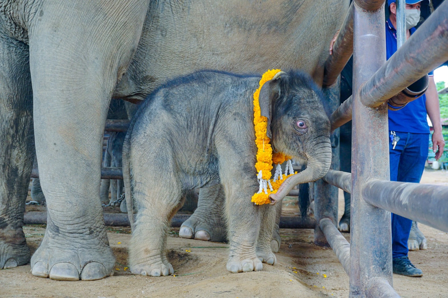 แม่ช้างเชือกหนึ่งอาจจะมีลูกได้3-4ตัว ตลอดชีวิตและใช้เวลาในการตั้งครรภ์ประมาณ 22 เดือน ช้างส่วนมากจะยืนคลอดลูก โดยย่อขาหลังต่ำลงมา ลูกซึ่งคลอดออกมาจะมีถุงใสๆ เป็นเยื่อบางๆ หุ้มอยู่ แม่ช้างจะเข้าไปช่วยฉีกถุงเยื่อที่หุ้มออกจากตัวลูกช้าง เมื่อฉีกถุงเยื่อออกแล้ว ตัวลูกช้างยังเปียกน้ำเมือกที่หล่อเลี้ยงอยู่ หลังจากนั้นลูกช้างจะนอนตะแคงนิ่งๆ มีการเคลื่อนไหวเฉพาะส่วนงวงและหู หรือขาบ้างเล็กน้อย พอตัวแห้งก็ค่อยๆ พยุงตัวยืนขึ้นเอง และเดินไปมาได้ช้าๆ และทางสวนนงนุชพัทยาเป็นปางช้างมีทีมสัตว์แพทย์และควาญช้างเฝ้าดูแลช้างทั้ง 4 เชือกอย่างดี